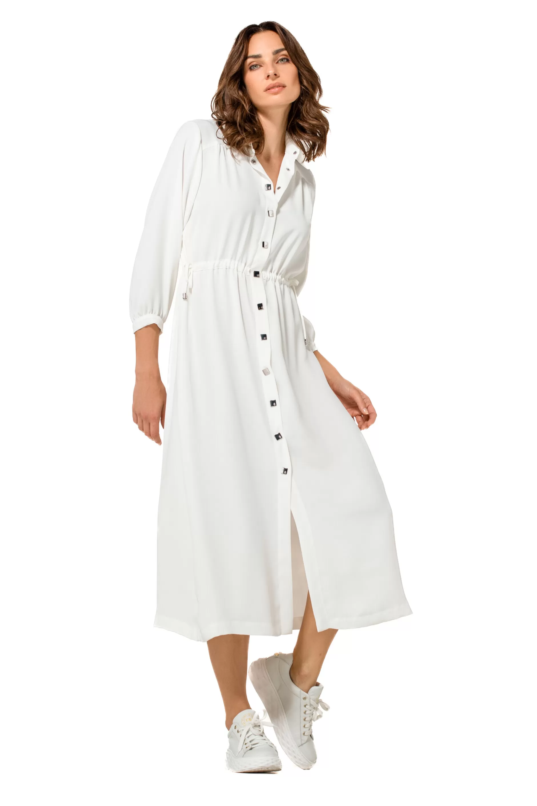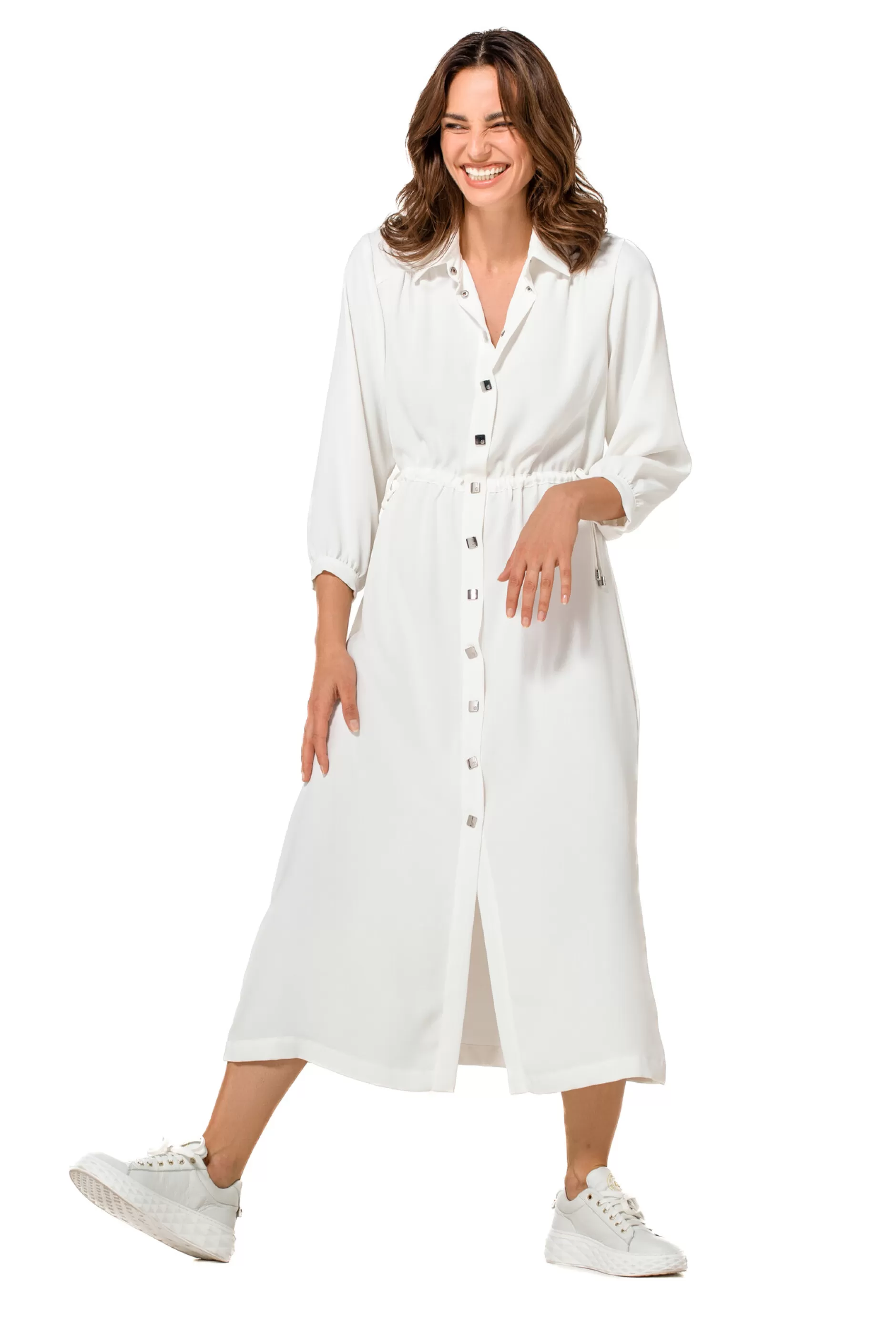 Soepelvallende Midi Hemdjurk &Nbsp;Ongevoerd Omwile Van Soepelheid Steekzakken In Zijnaad 3/4 Wijde Mouw Met Mouwboord K…