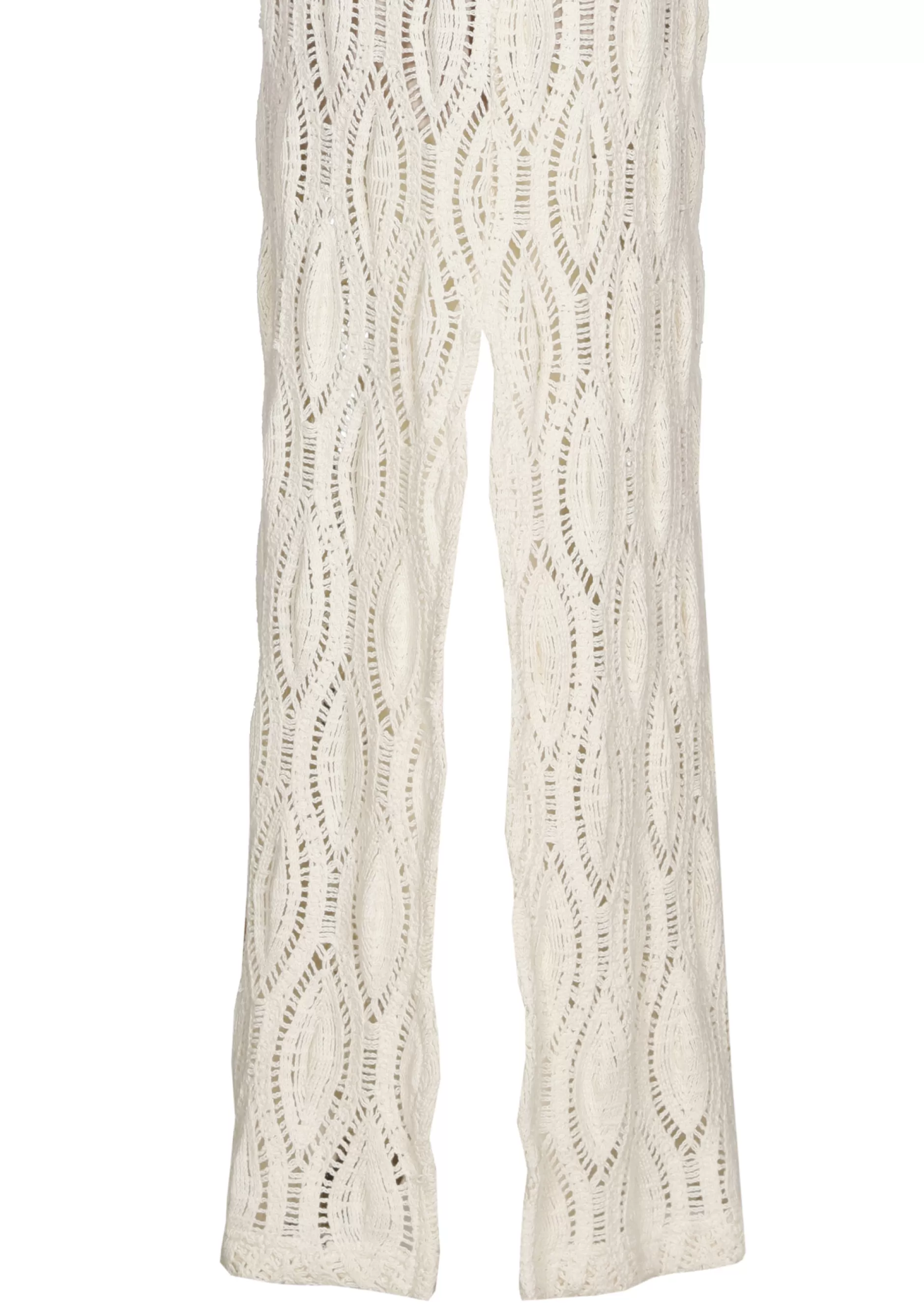 Rechtvallende Midi Jurk In Crochet &Nbsp;Gevoerd Frivole Korte Mouw Riem Inbegrepen Geen Zakken Geen Sluiting Hoge Split…