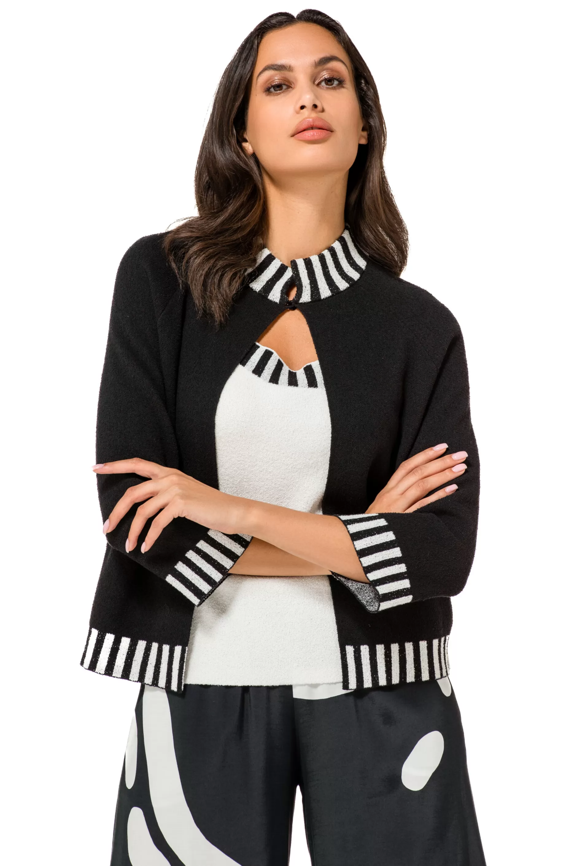 Korte Comfortabele Cardigan &Nbsp;3/4 Mouw Knoopsluiting Aan Halsboord Fictieve Zakken Op Voorpand