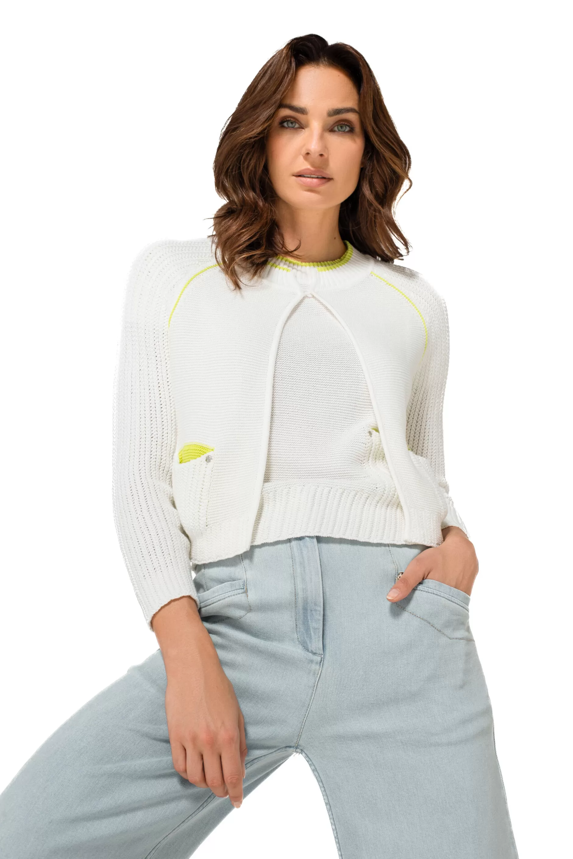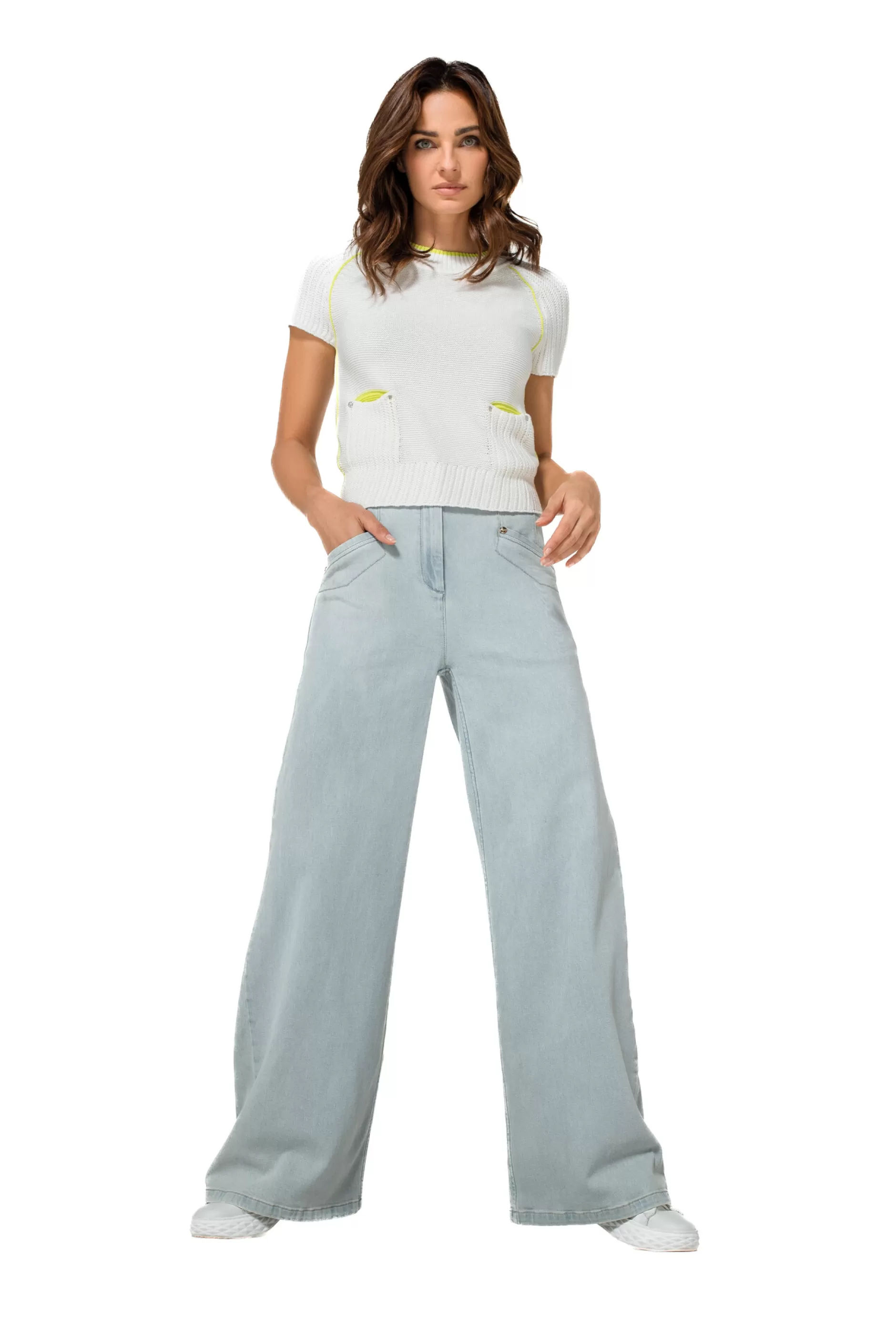 Fijn Gebreide Top 2 Styles &Nbsp;Korte Mouw Steekzakken Voorpand Brede Ronde Hals