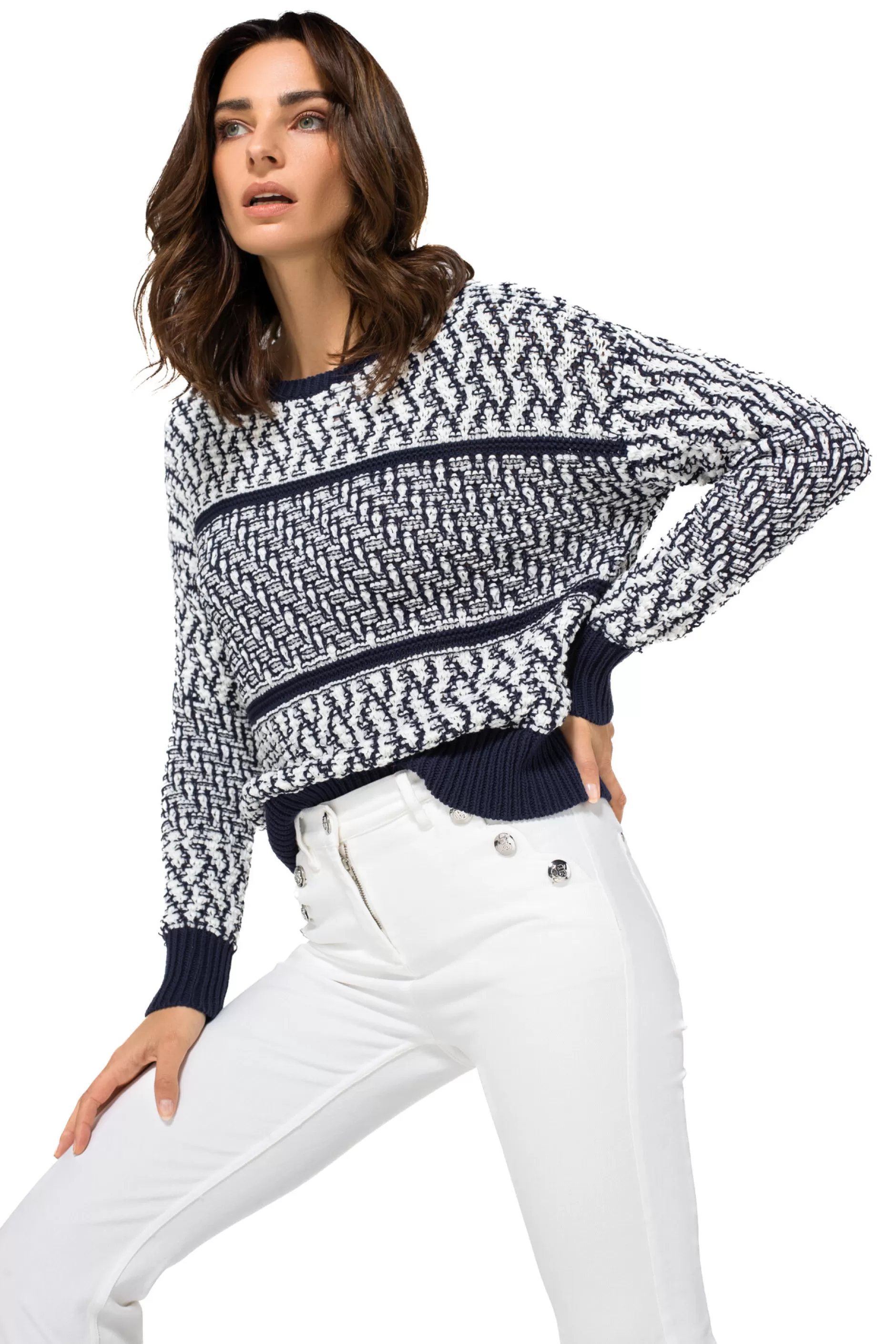 Grof Gebreide ‘Début De Saison’ Pull &Nbsp;Lange Mouw Met Hoge Mouwboord Hoge Zoomboord Brede Ronde Hals