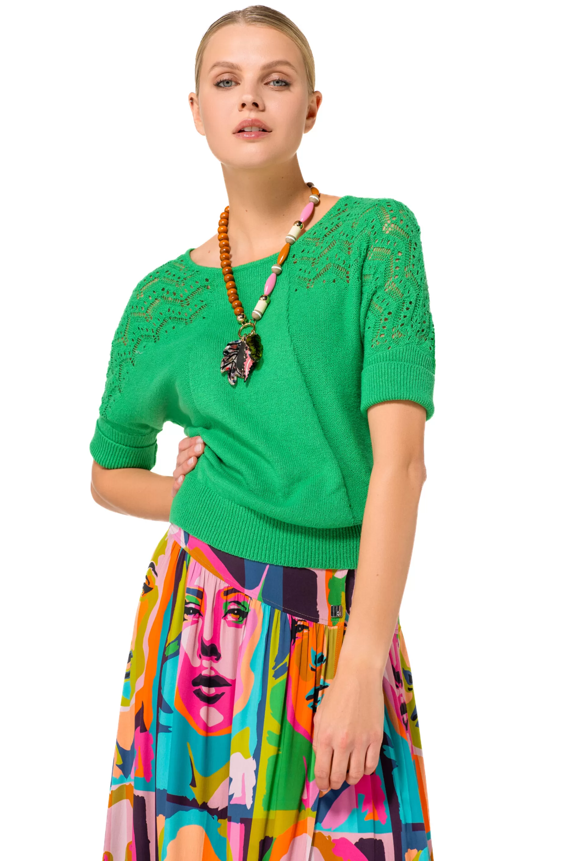 Fijn Gebreide Pull 2 Styles &Nbsp;Korte Mouw Met Omslagboord Brede Ronde Hals Hoge Zoomboord