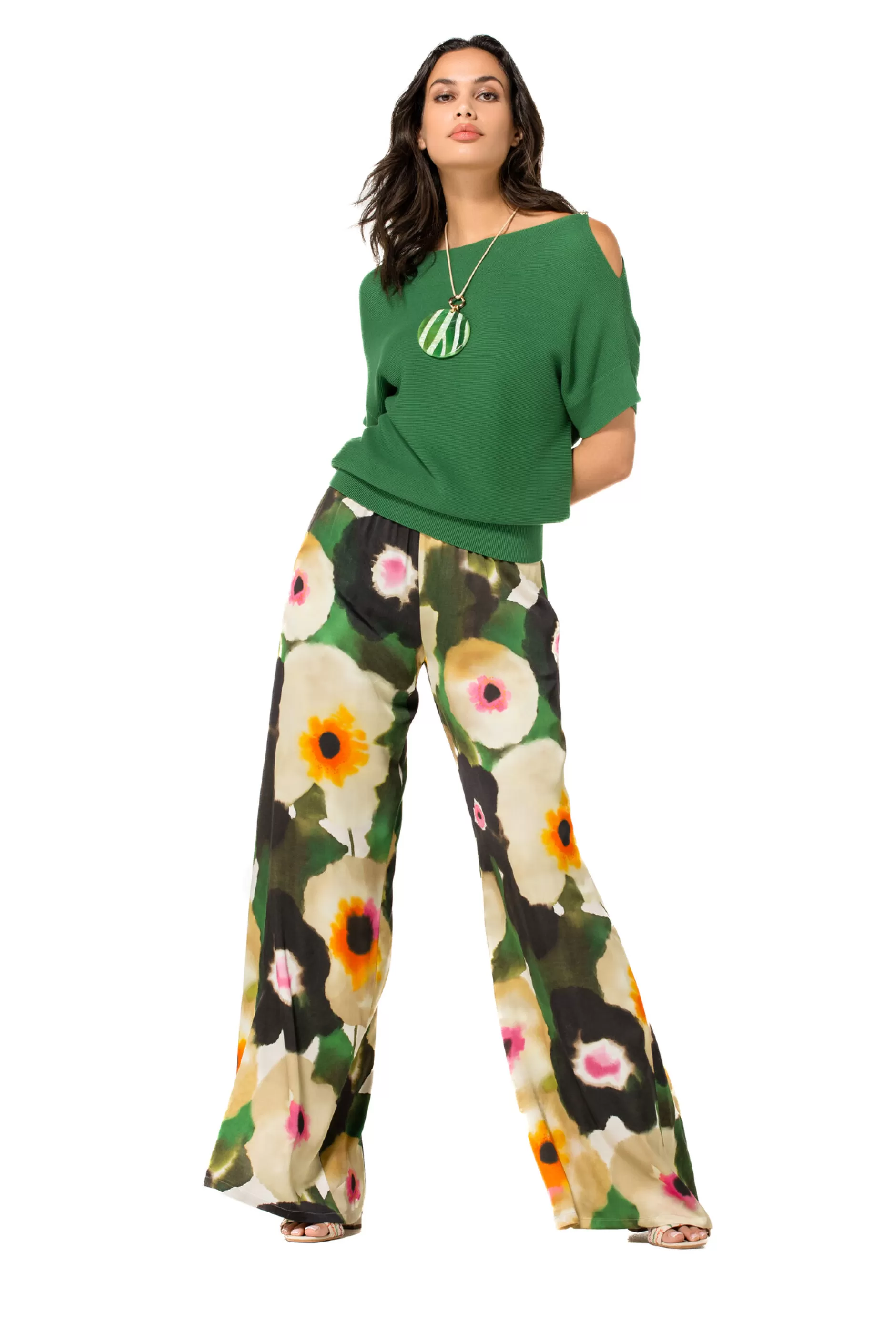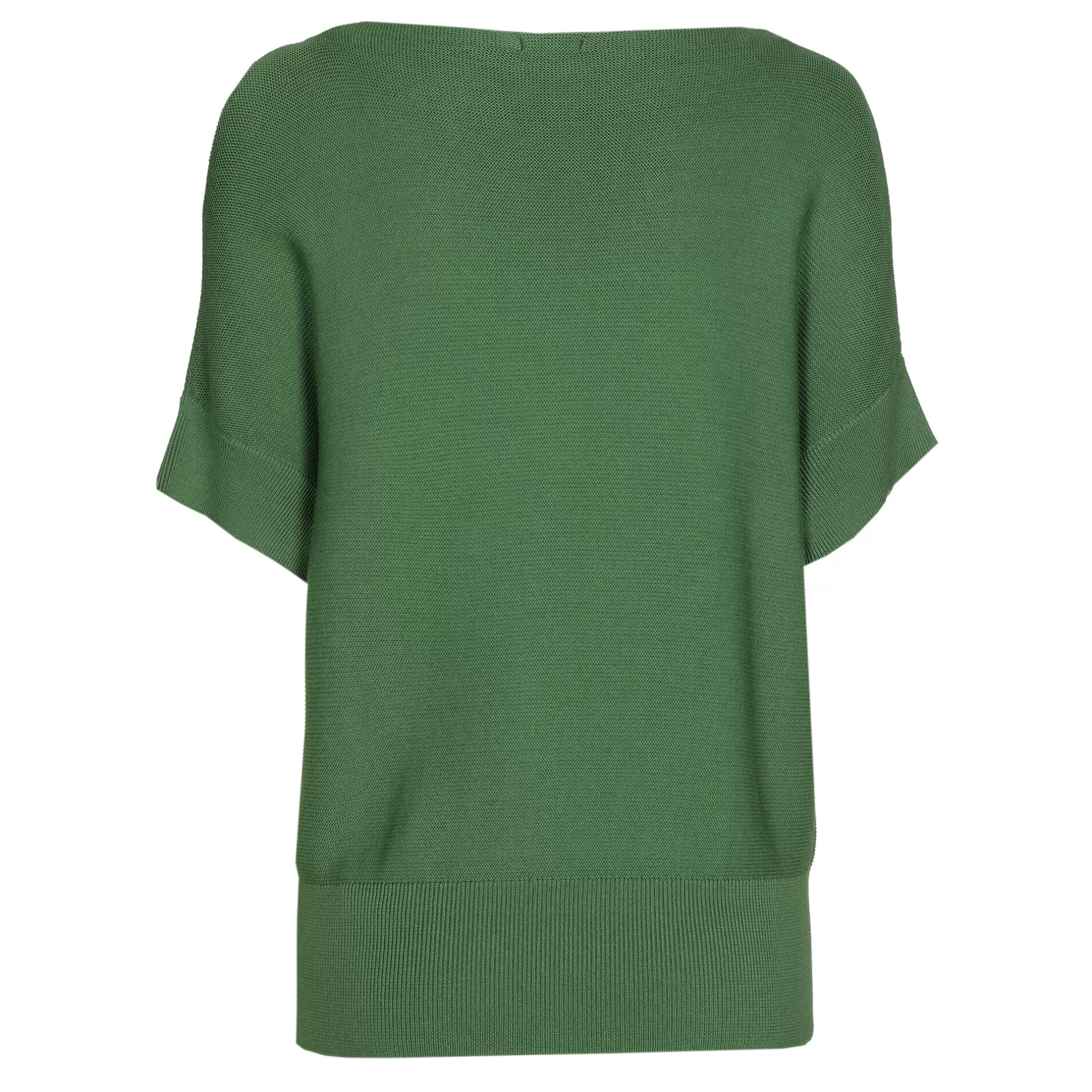 Fijn Gebreide Top Met Schoudereffect &Nbsp;Asymmetrisch Model Korte Mouw Hoge Zoomboord Brede Ronde Hals