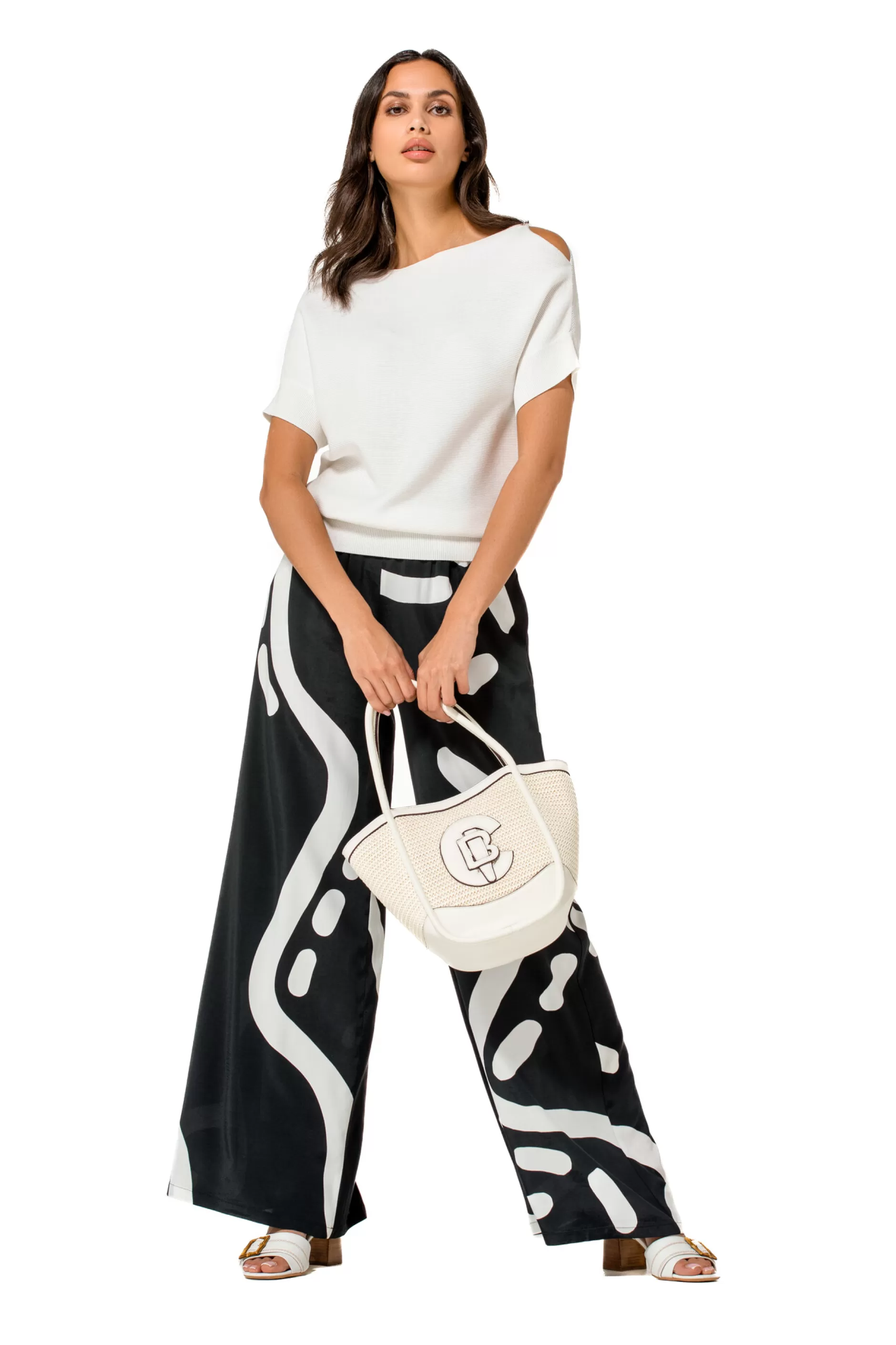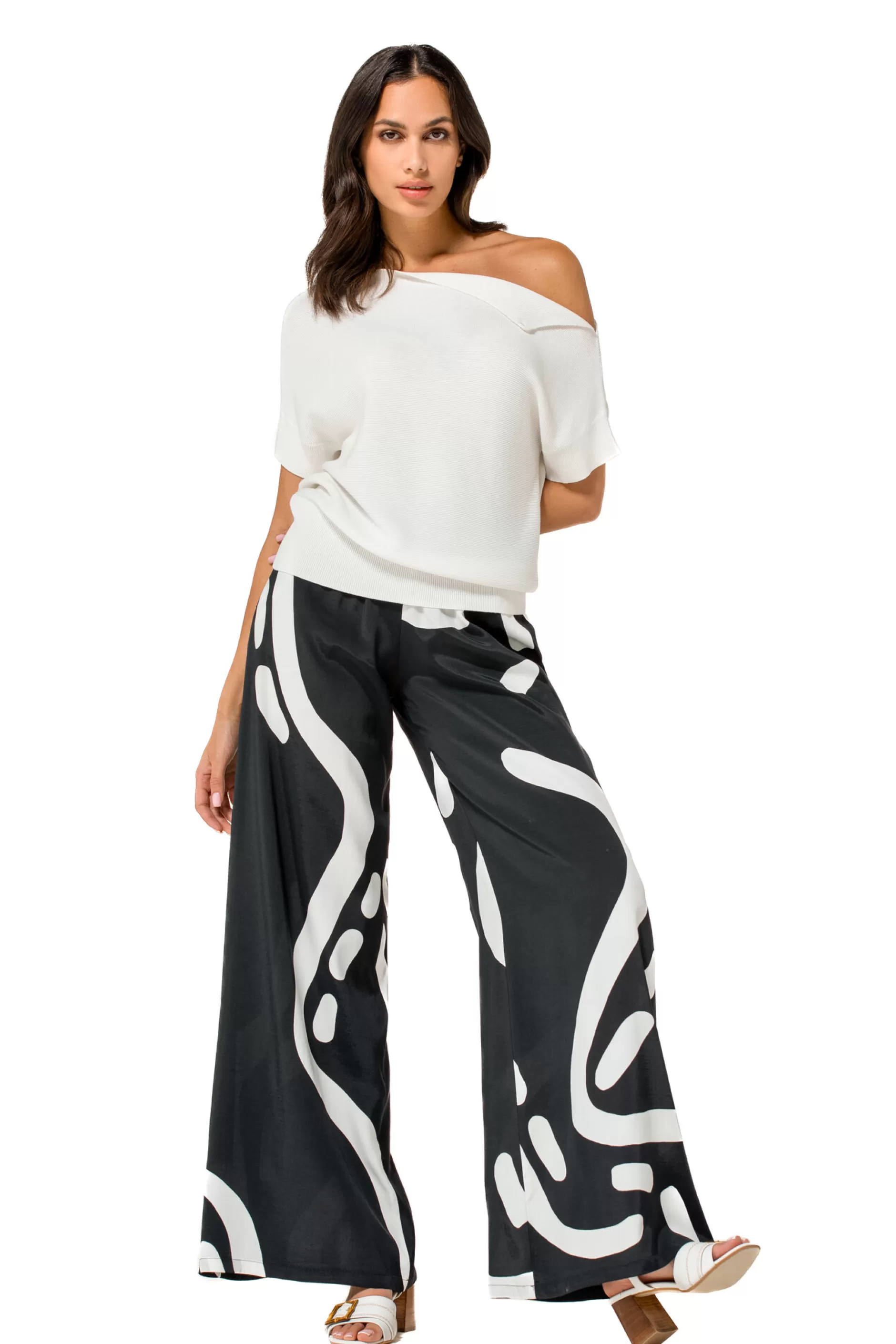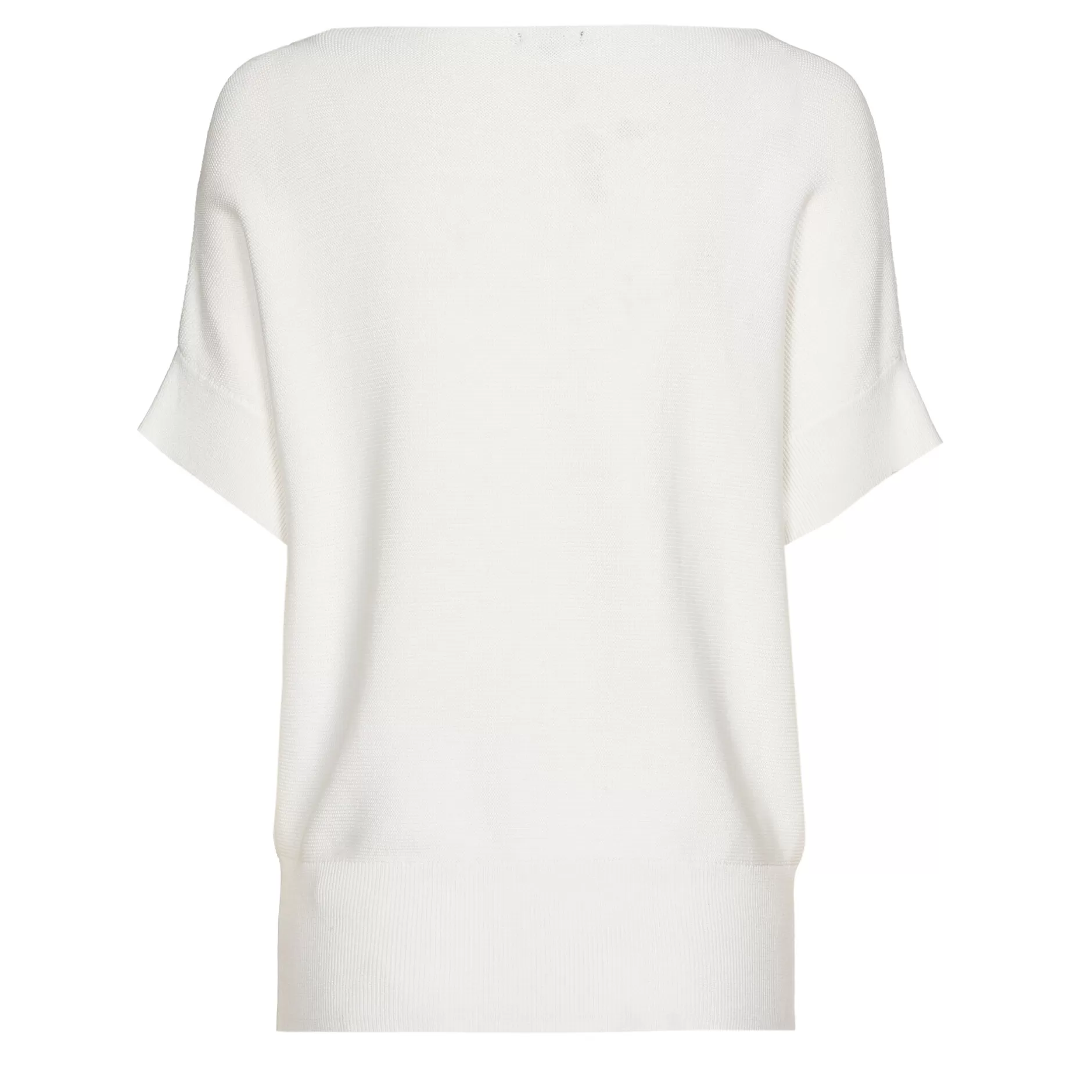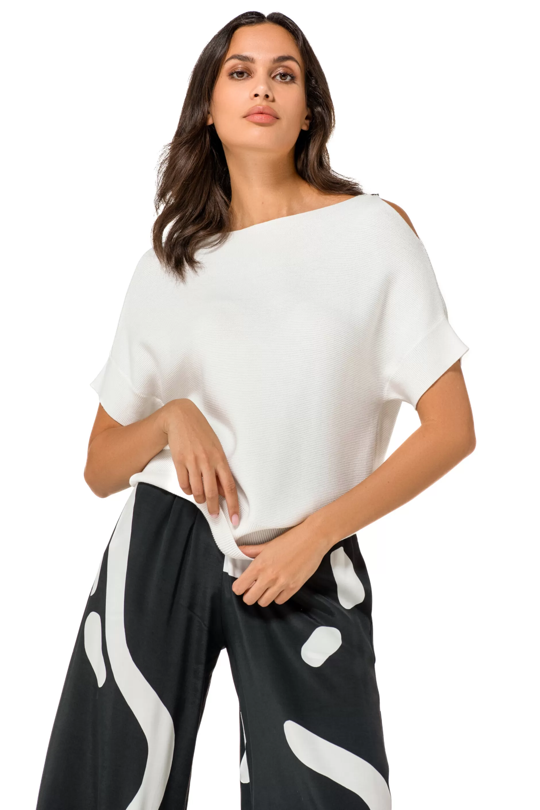 Fijn Gebreide Top Met Schoudereffect &Nbsp;Asymmetrisch Model Korte Mouw Hoge Zoomboord Brede Ronde Hals