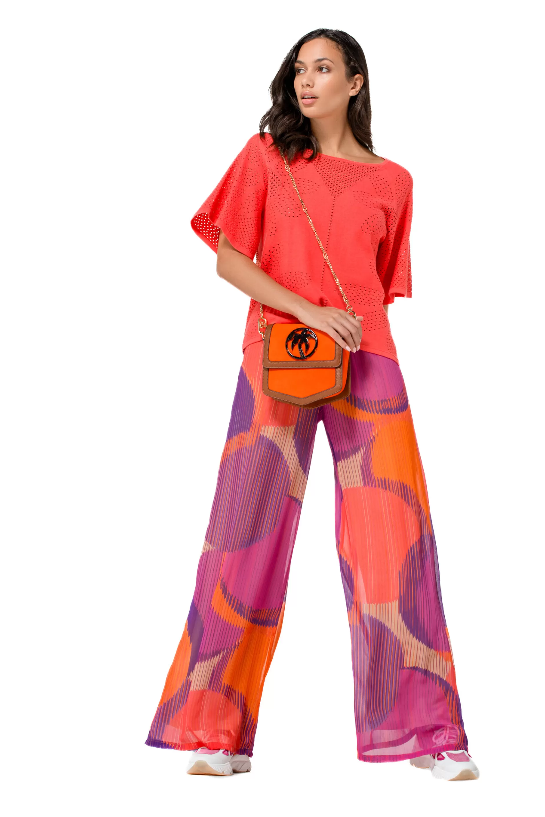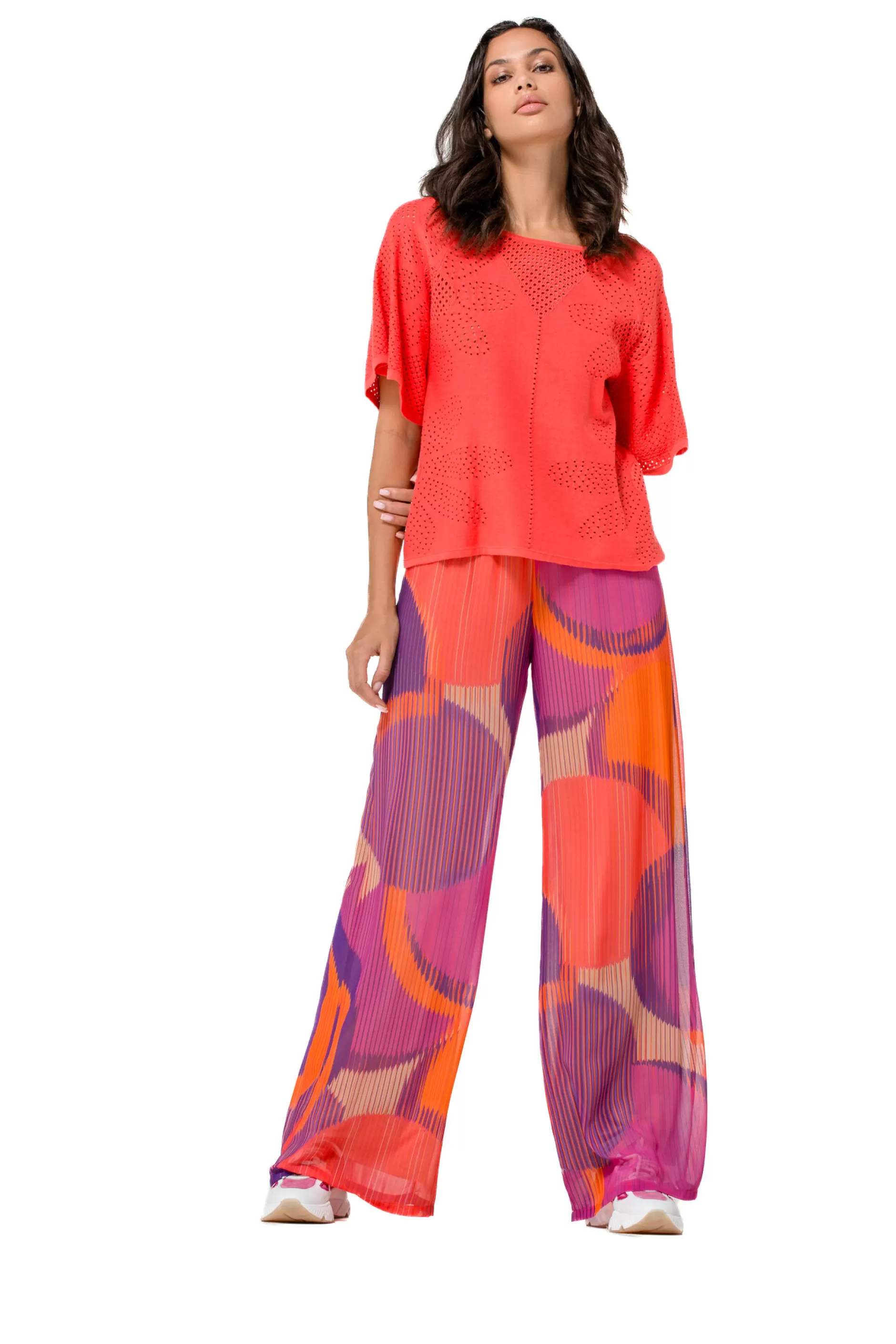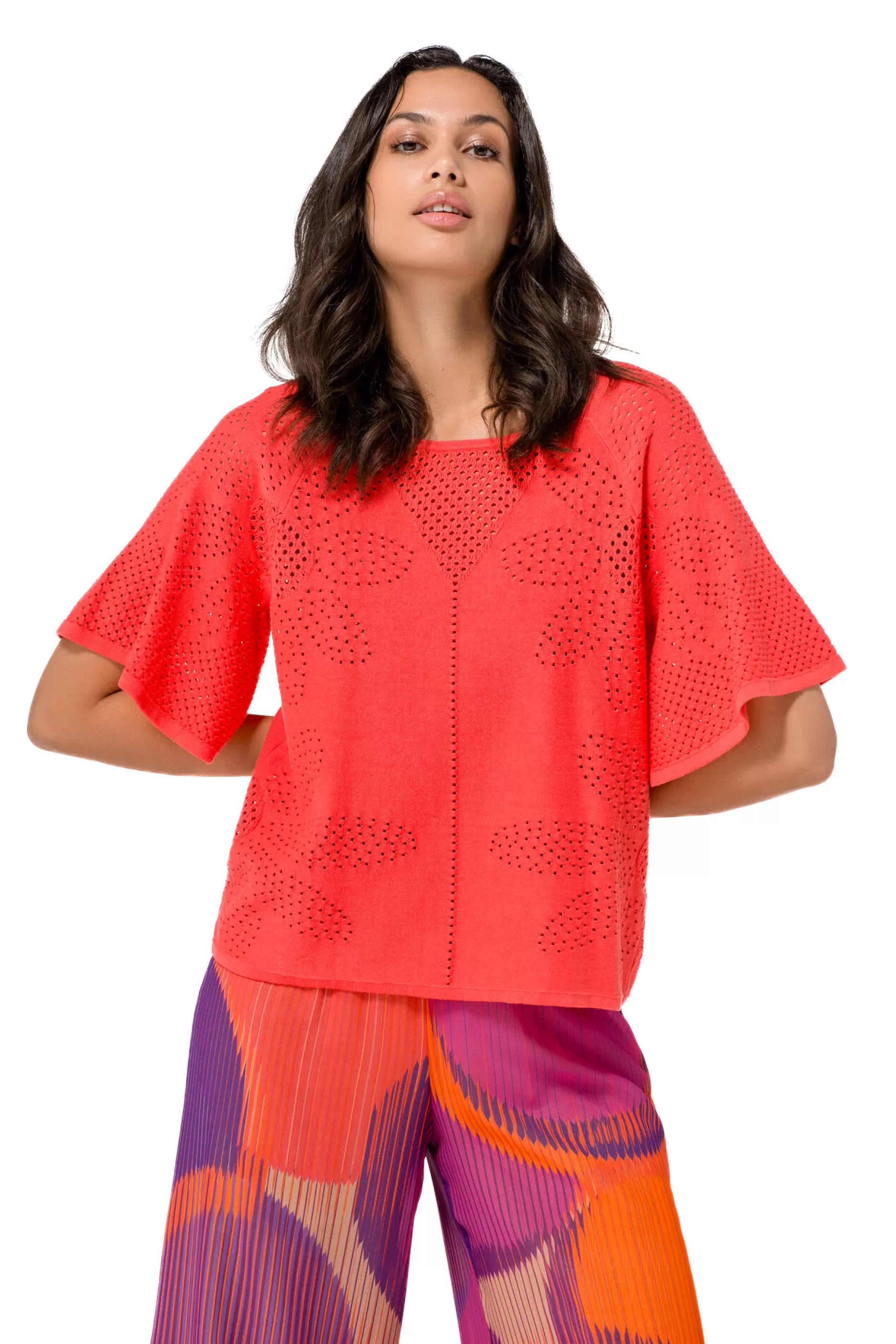 Fijn Gebreide Pull Met Bloemeffect &Nbsp;Korte Frivole Mouw Diepe Ronde Hals