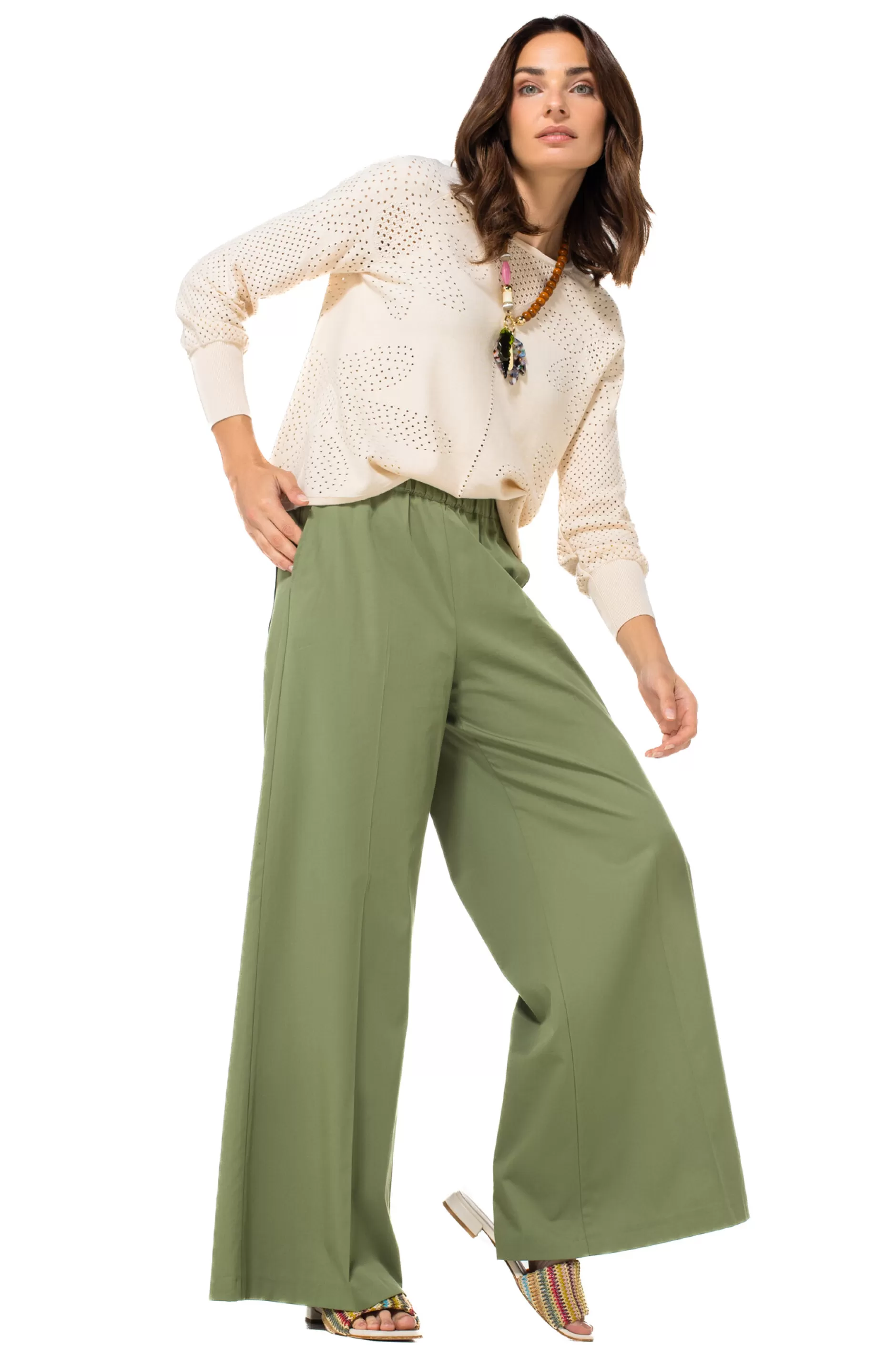 Fijn Gebreide Pull Met Bloemeffect &Nbsp;Lange Mouw Met Hoge Mouwboord Brede Ronde Hals