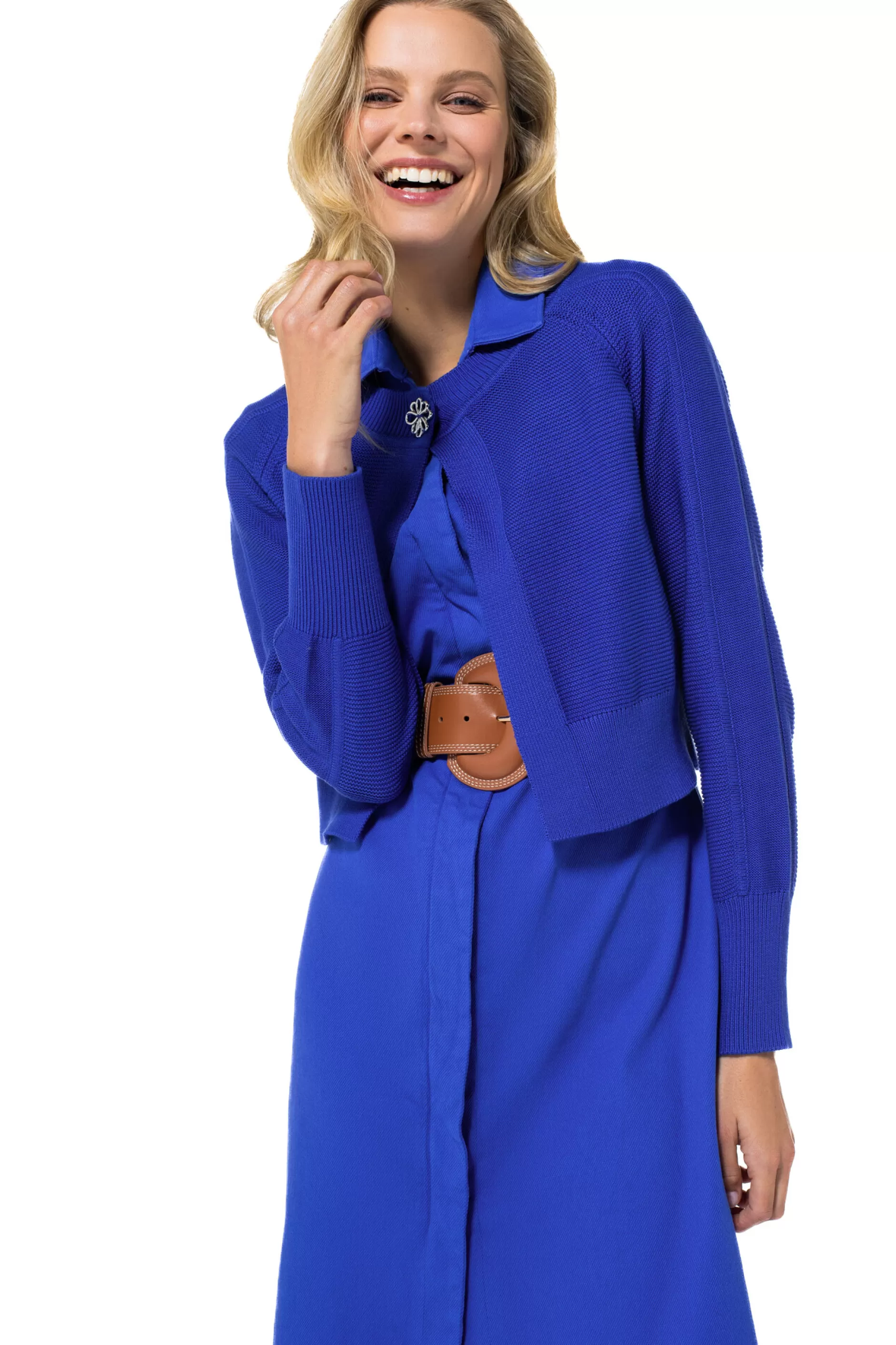 Fijn Gebreide Bolero &Nbsp;Knoopsluiting Aan Halsboord Lange Mouw Met Hoge Mouwboord Hoge Zoomboord