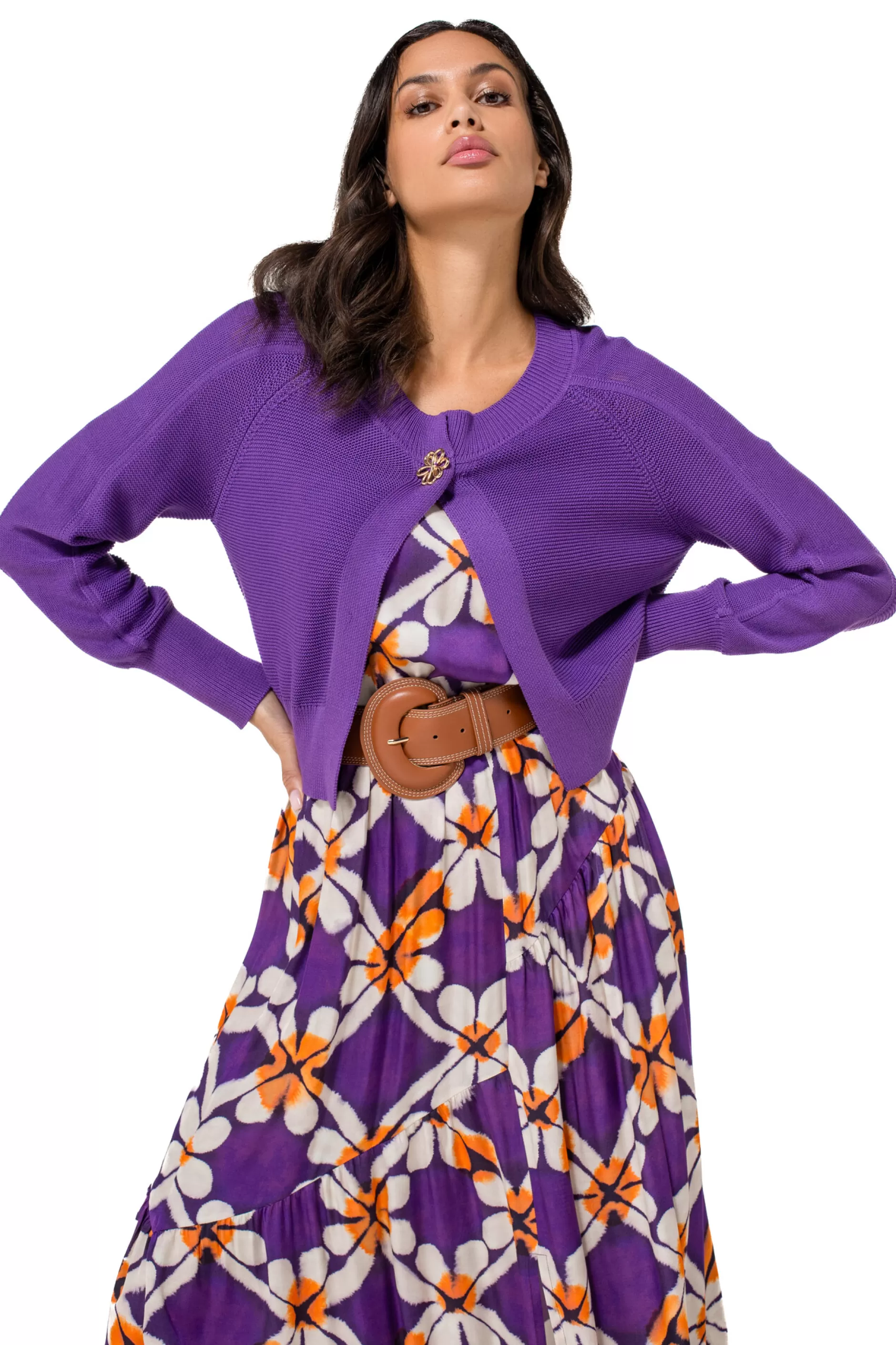 Fijn Gebreide Bolero &Nbsp;Knoopsluiting Aan Halsboord Lange Mouw Met Hoge Mouwboord Hoge Zoomboord