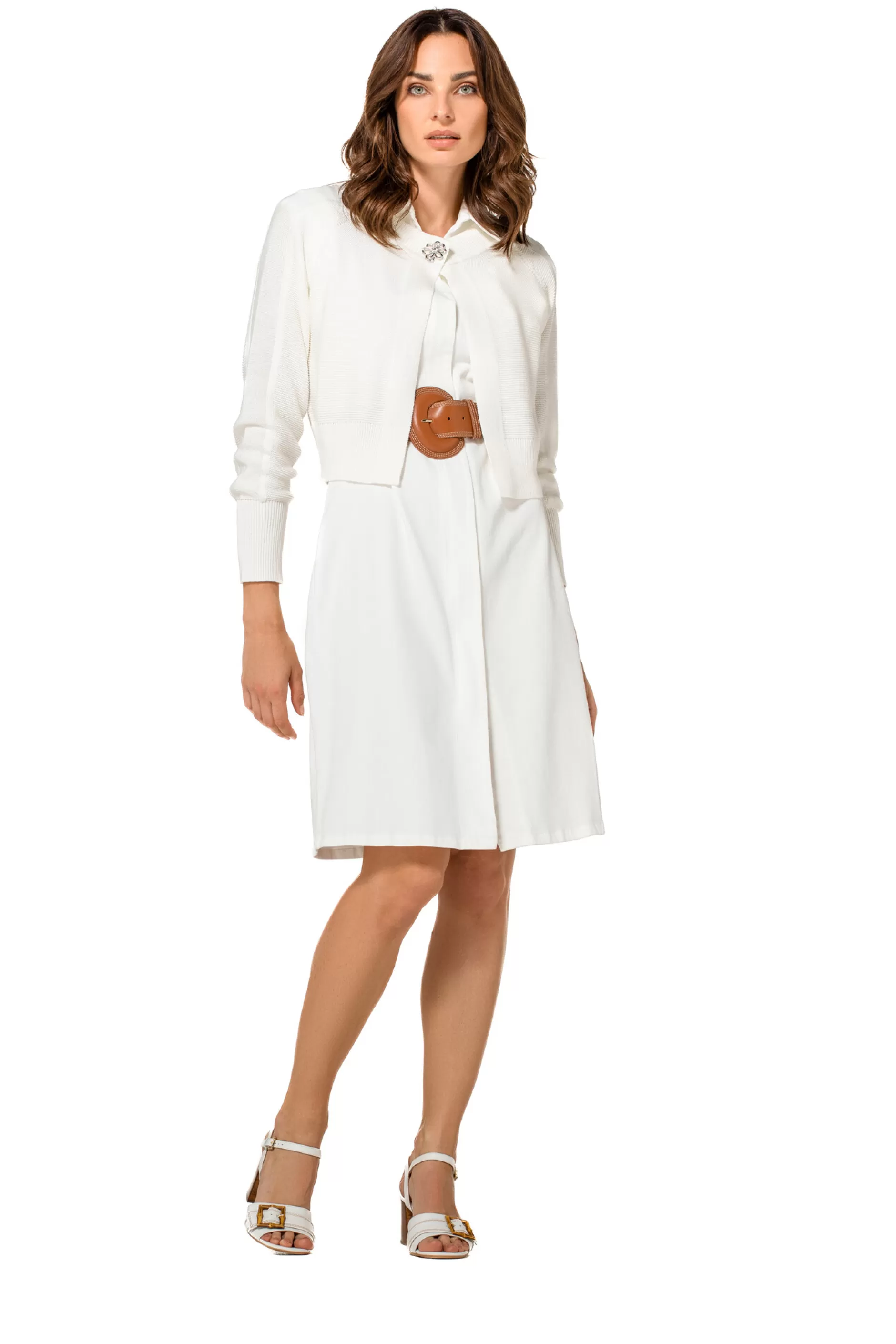 Fijn Gebreide Bolero &Nbsp;Knoopsluiting Aan Halsboord Lange Mouw Met Hoge Mouwboord Hoge Zoomboord