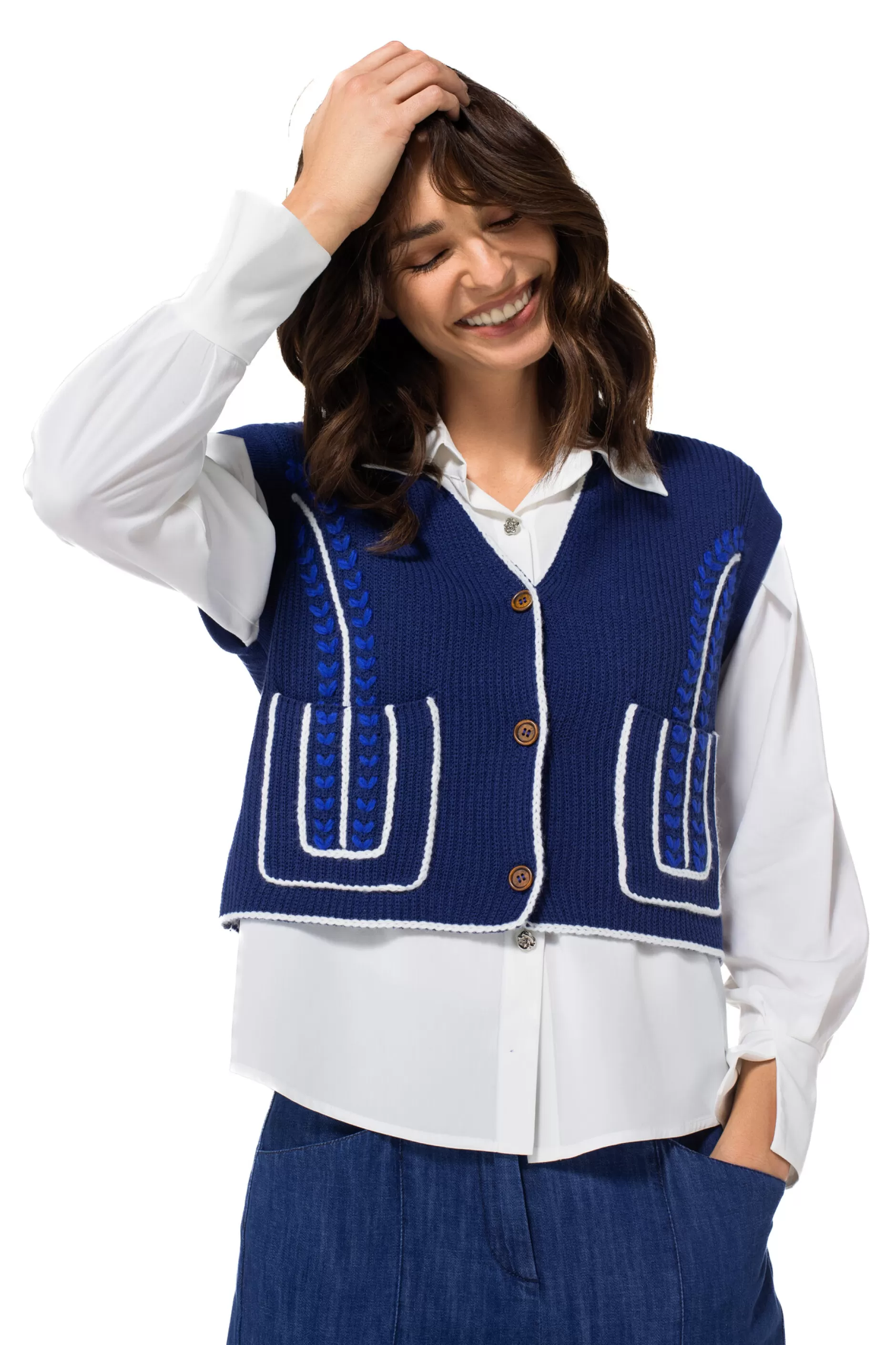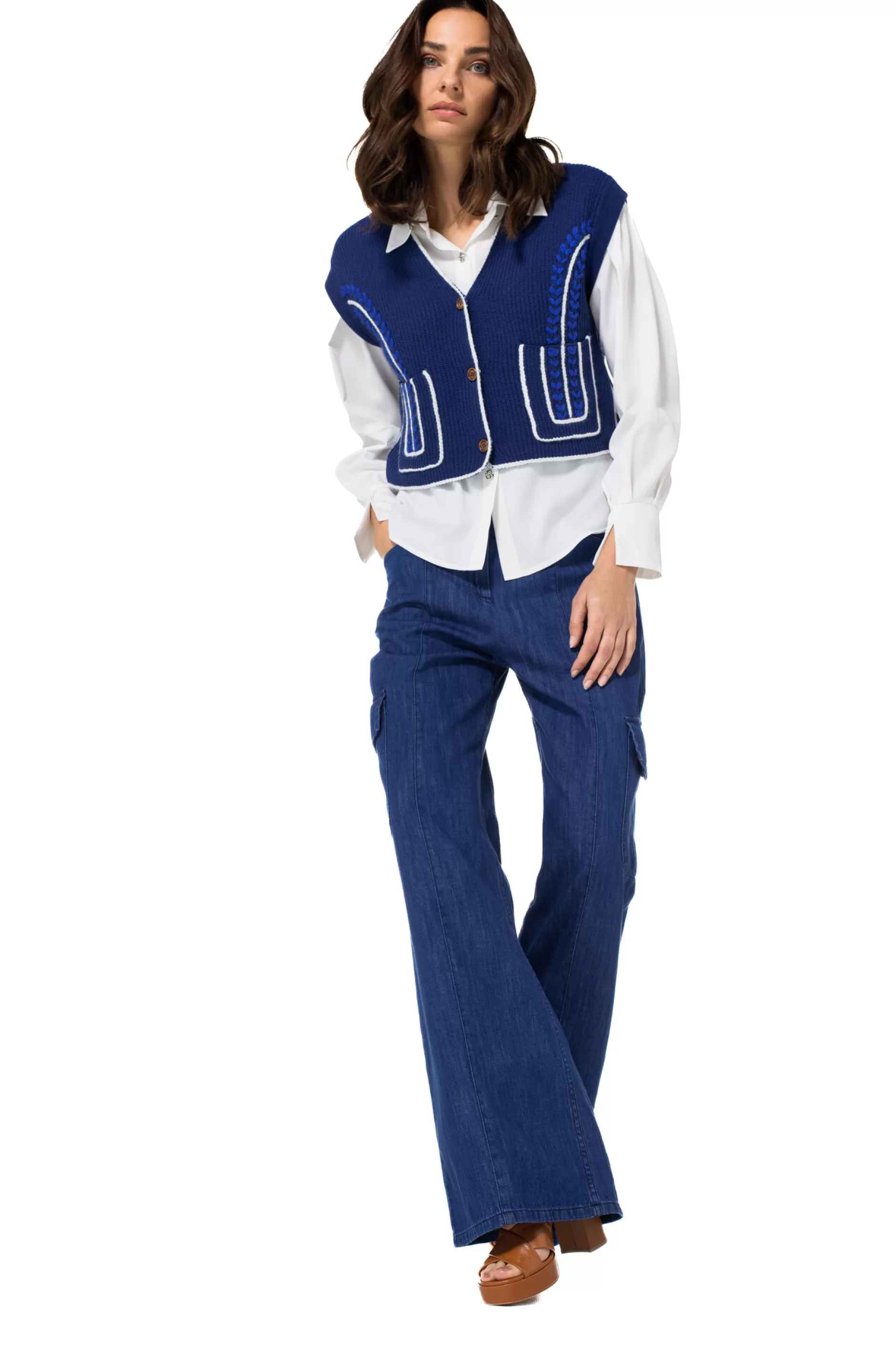 Débardeur Pull In Katoen &Nbsp;Knoopsluiting Middenvoor Opgestikte Zakken