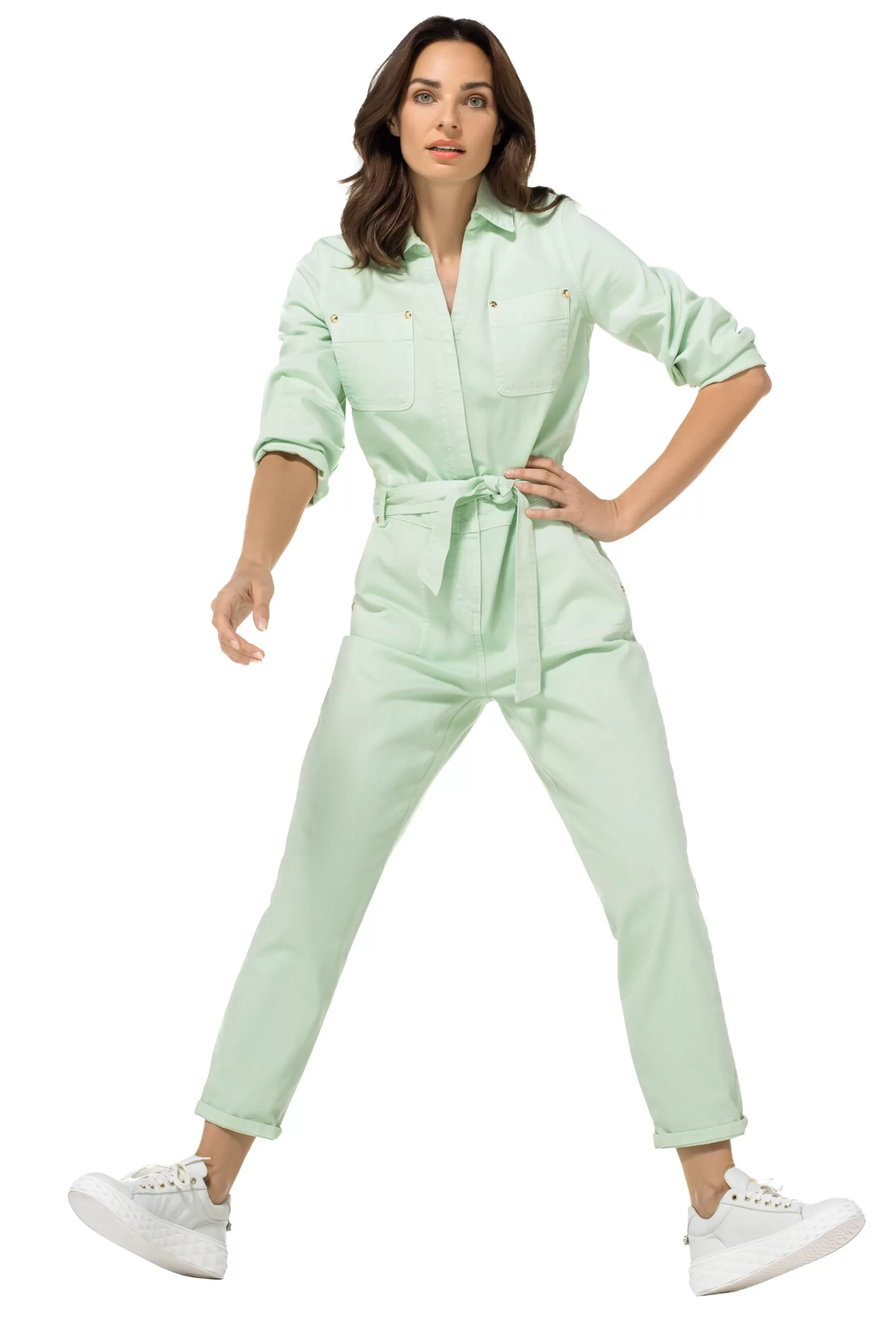 Comfortabele Jumpsuit, Smal Been &Nbsp;Verborgen Rits Middenvoor Steekzakken Met Stiksel Op Voorpand Opgestikte Zakken O…