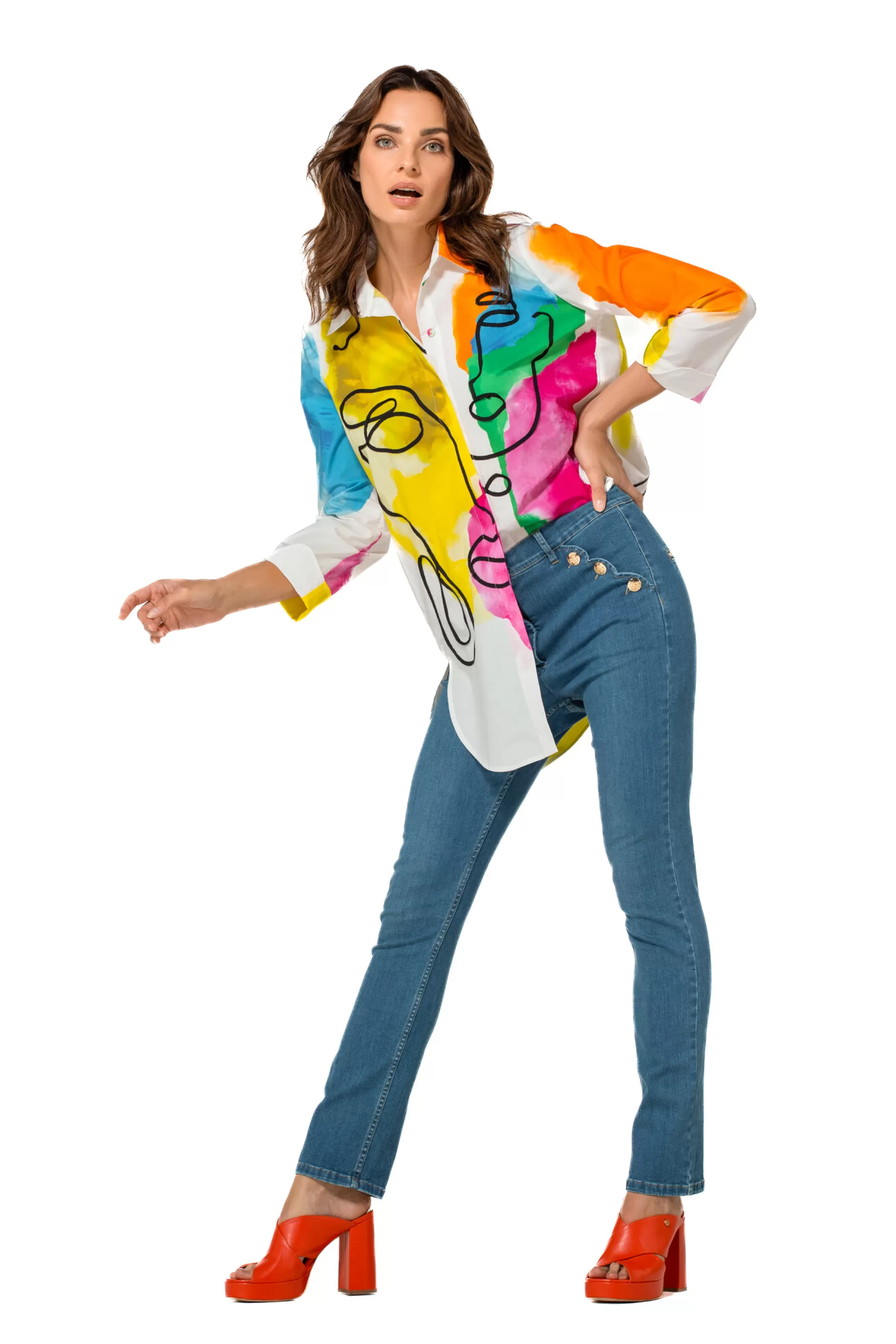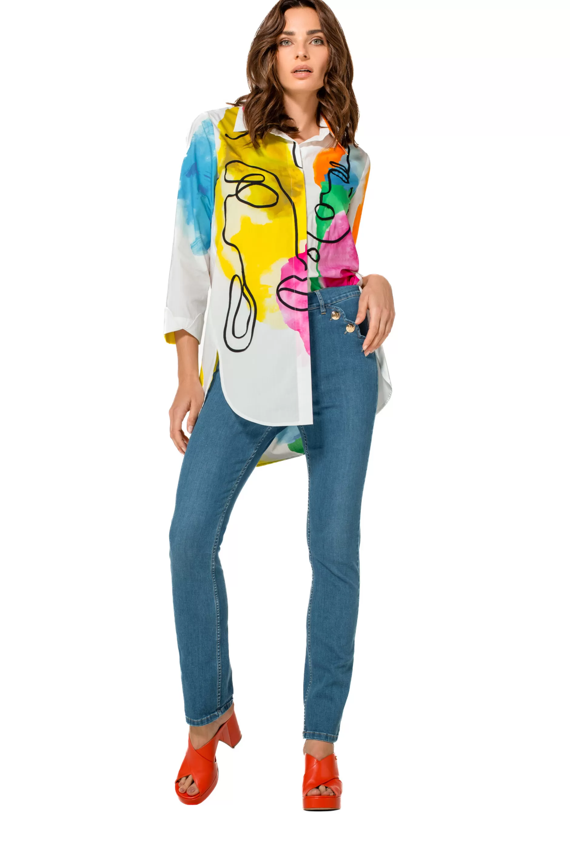 Comfortabele Slim Fit Jeans, Normal Waist &Nbsp;Ritssluiting Met Knoop Middenvoor Steekzakken Met Knoopdetail Op Voorpan…
