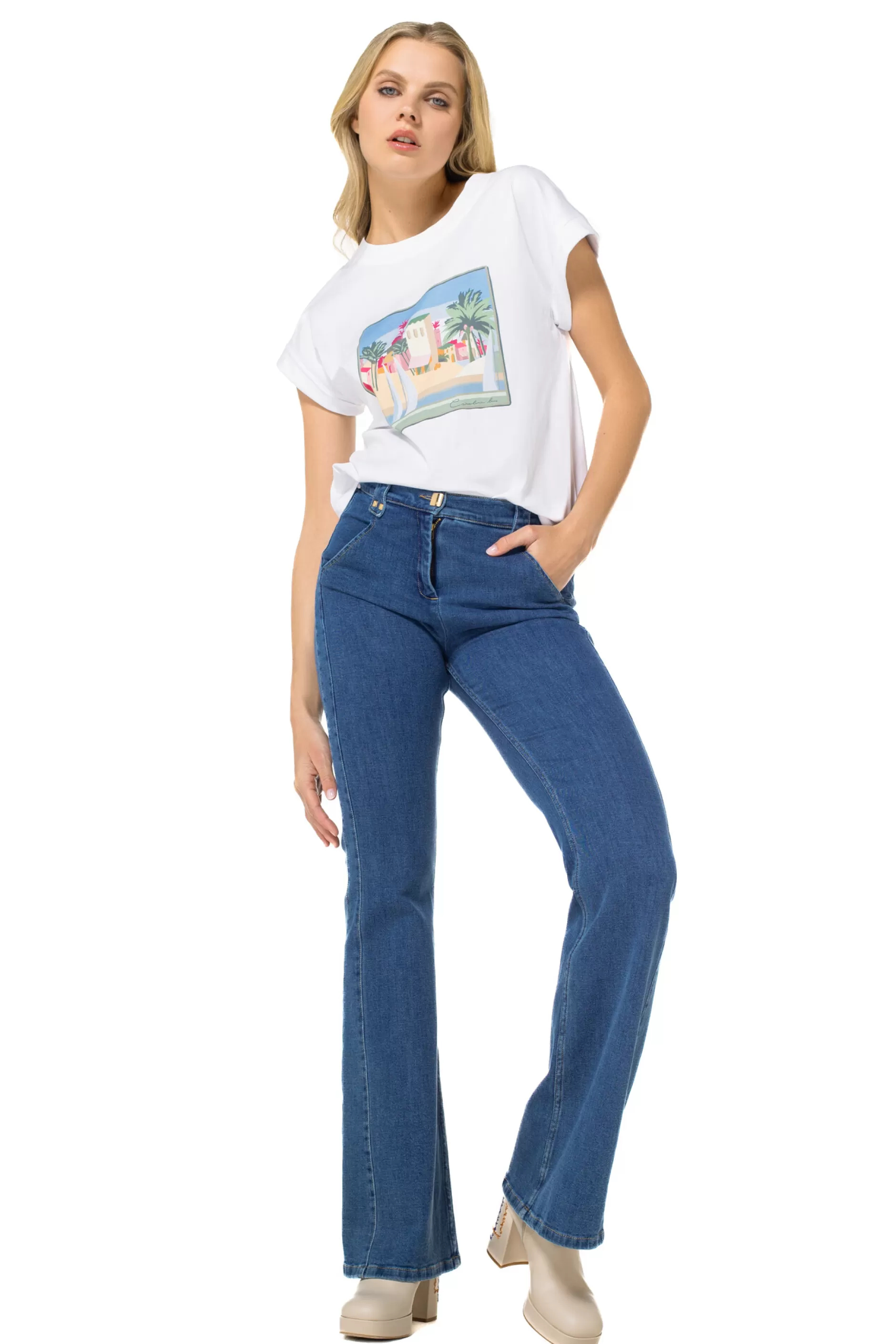 Comfortabele Bootcut Jeans, Normal Waist &Nbsp;Ritssluiting &Amp; Knoop Middenvoor Steekzakken In Voorpand Opgestikte Za…