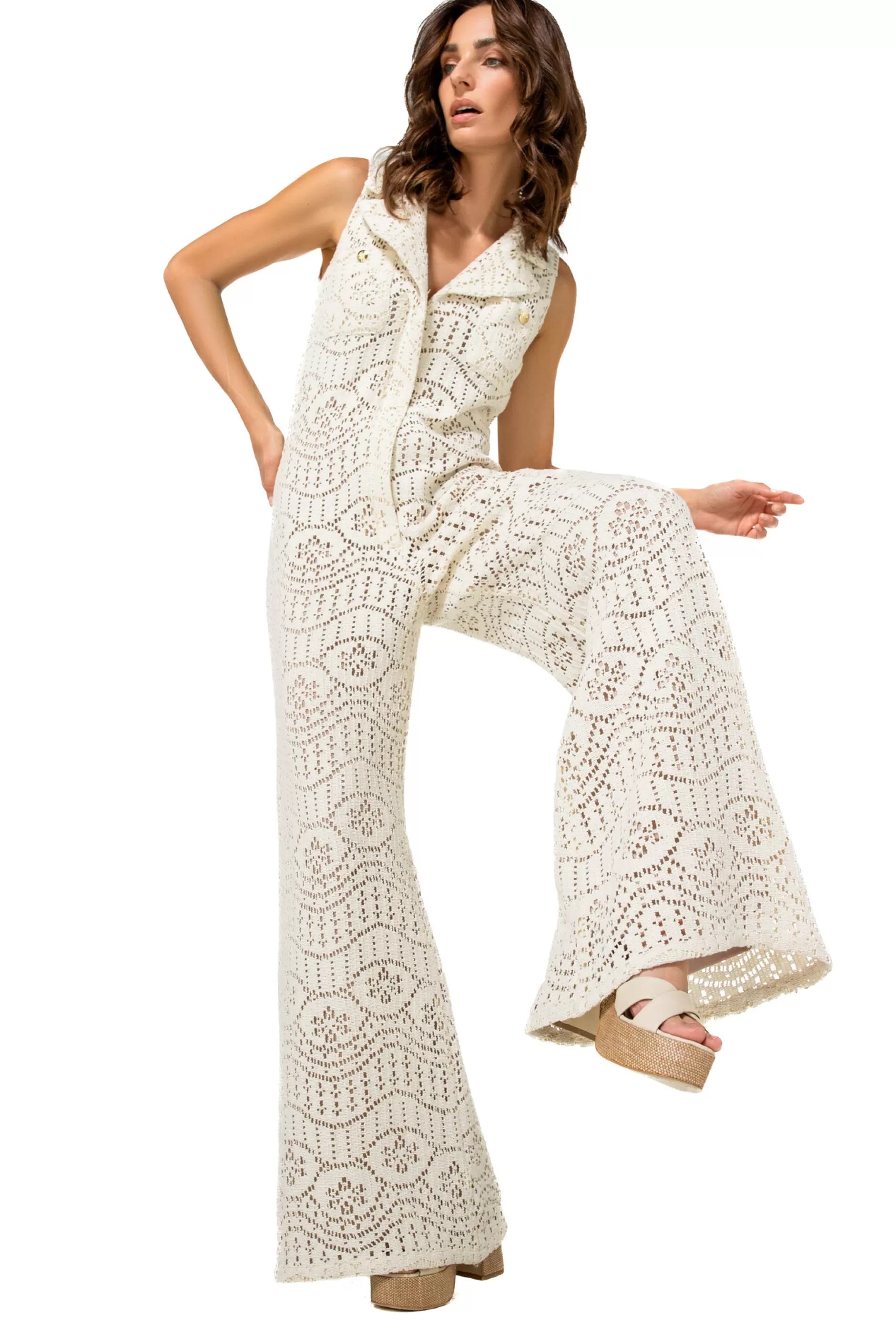 Soepelvallende Jumpsuit In Crochet, Wijd Been