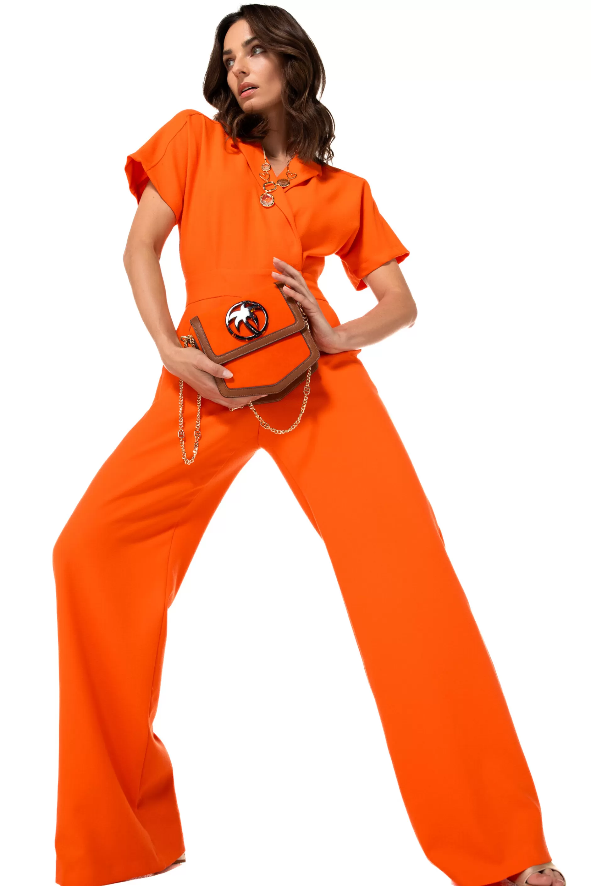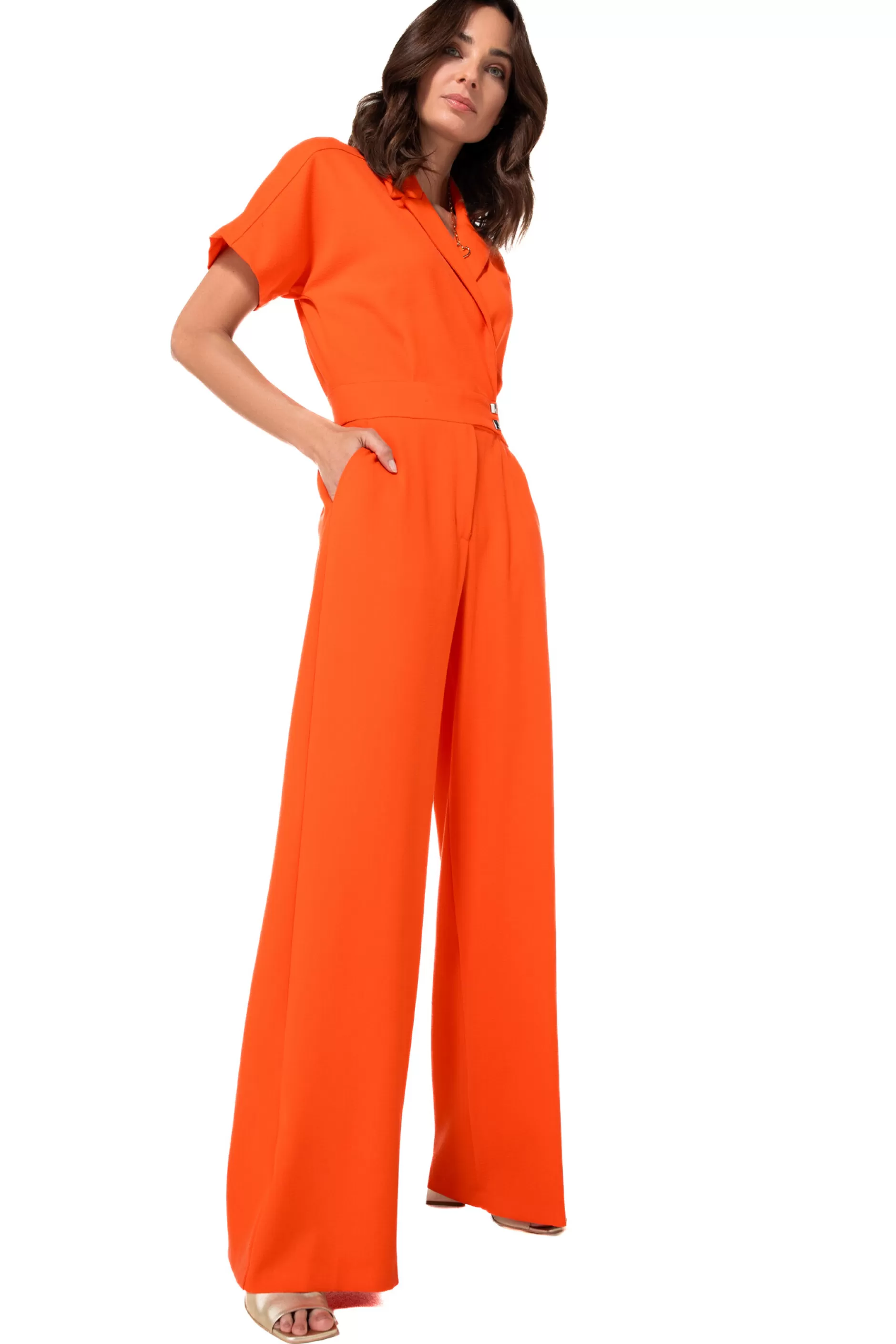 Soepelvallende Comfortabele Jumpsuit, Wijd Been &Nbsp;Cache-Coeur Sluiting Met Verborgen Rits Steekzakken In Zijnaad Pla…