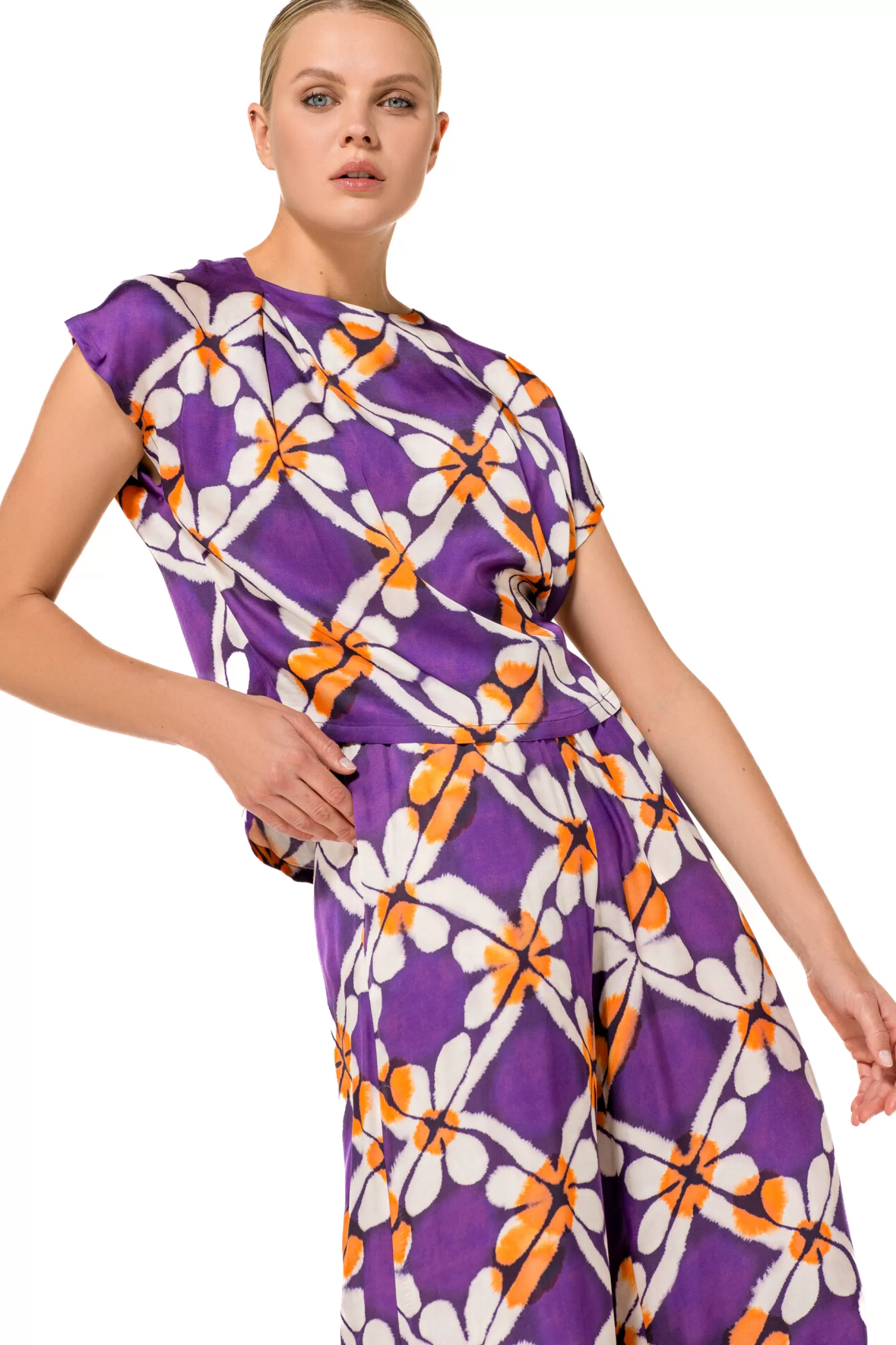 Korte Rechte Soepelvallende Top &Nbsp;Druppelsluiting Met Knoopje Aan Middenrug Handfeel: Shiny Zijde