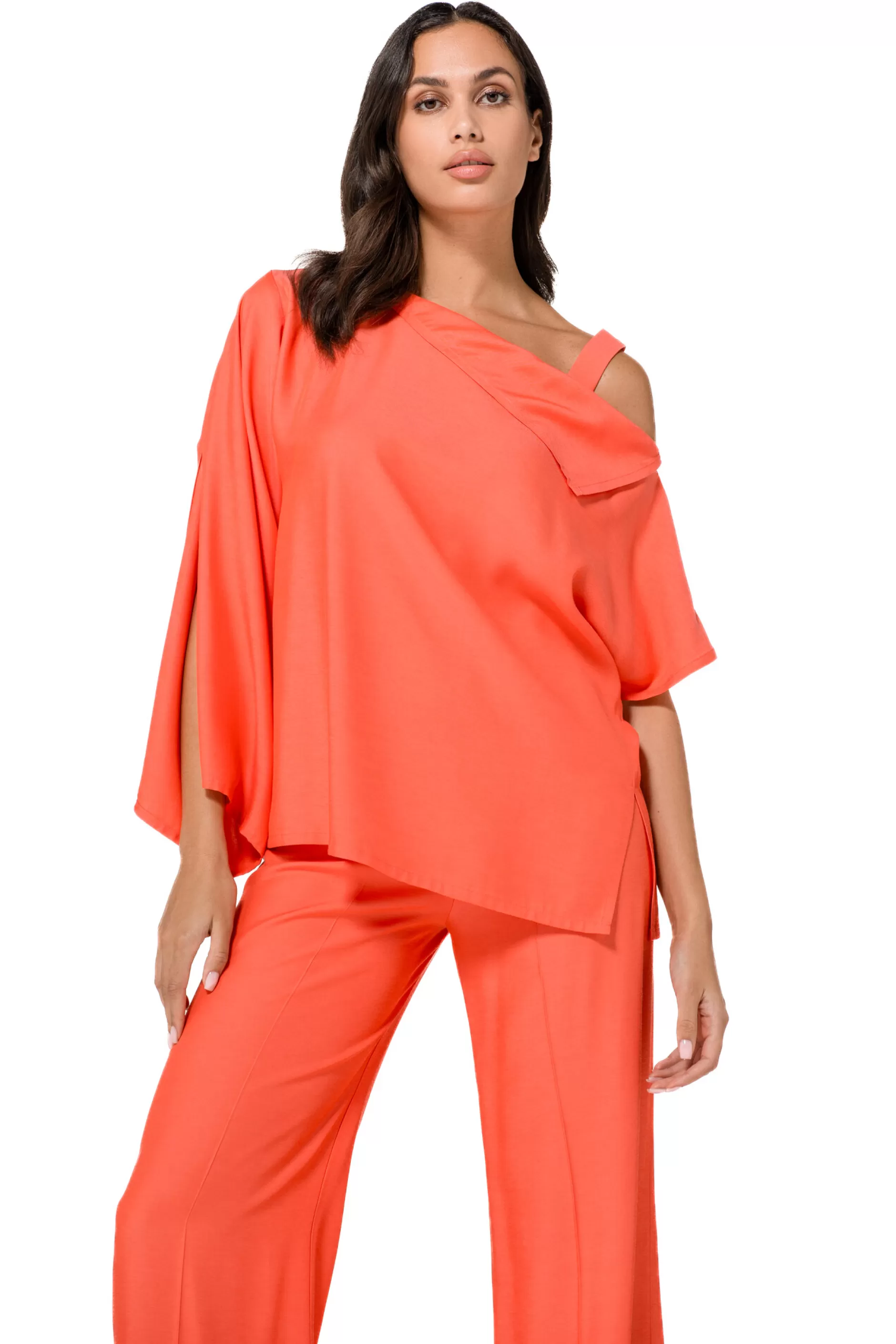 Asymmetrische Geklede Top &Nbsp;Frivole Wijde Mouw Split In Zijnaad