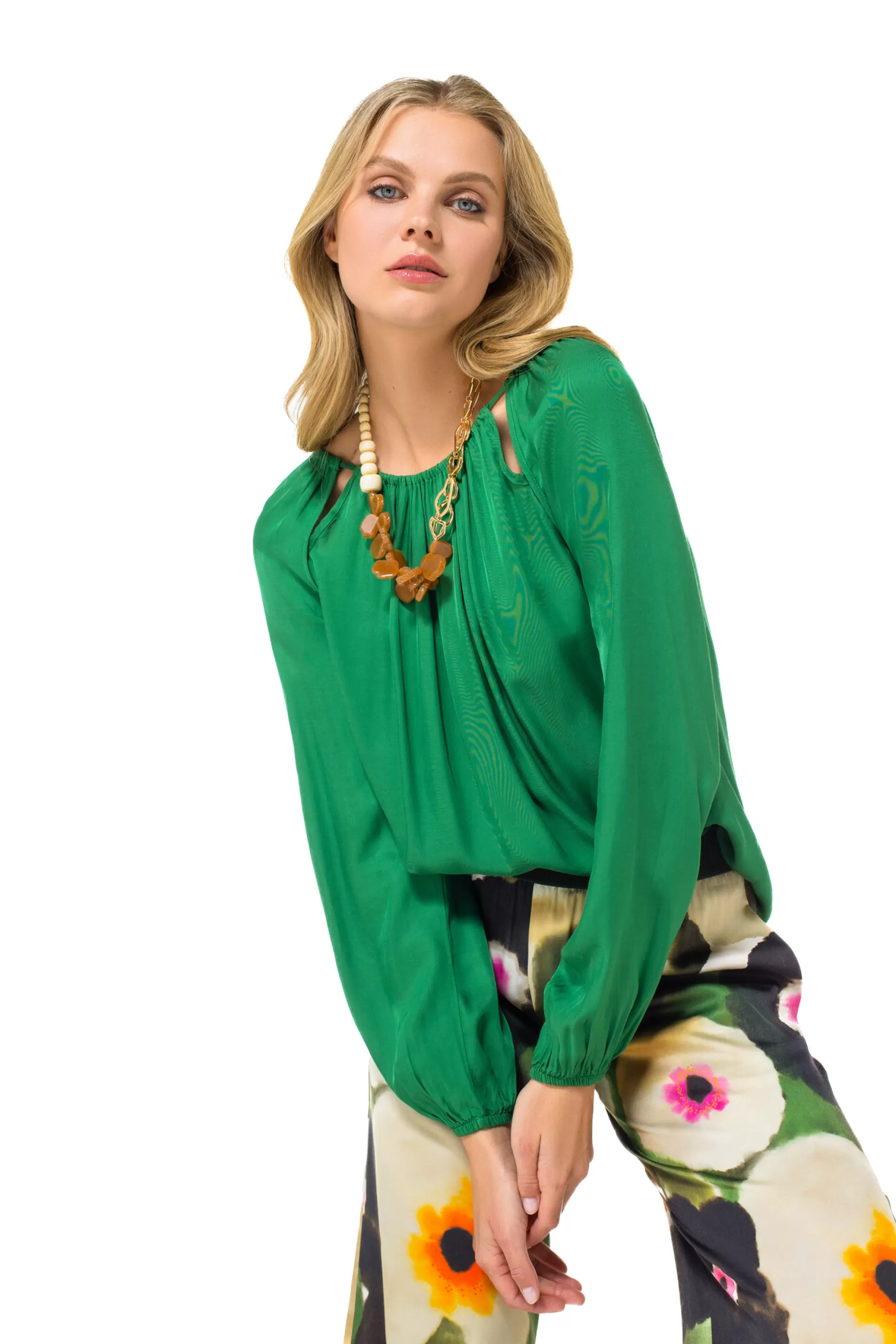 Soepelvallende Rechte Bloes Met Décolleté Effect &Nbsp;Lange Mouw Met Elastisch Mouwboord Afgeronde Zoomboord Fronsjes…