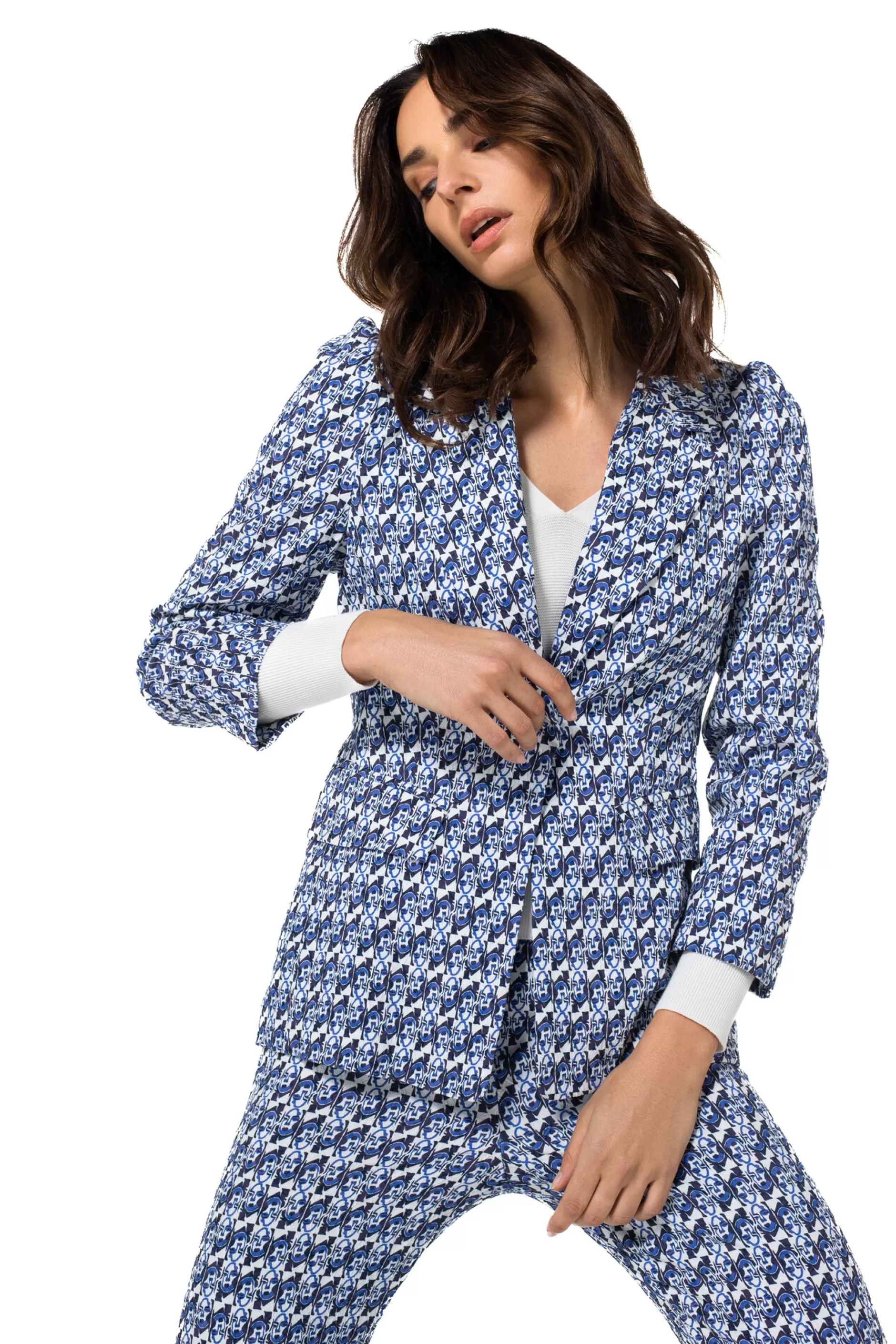 Comfortabele Blazer Pop-Art Print &Nbsp;Ongevoerd Omwile Van Comfort 3/4 Mouw Knoopsluiting Middenvoor Fronsjeseffect Aa…