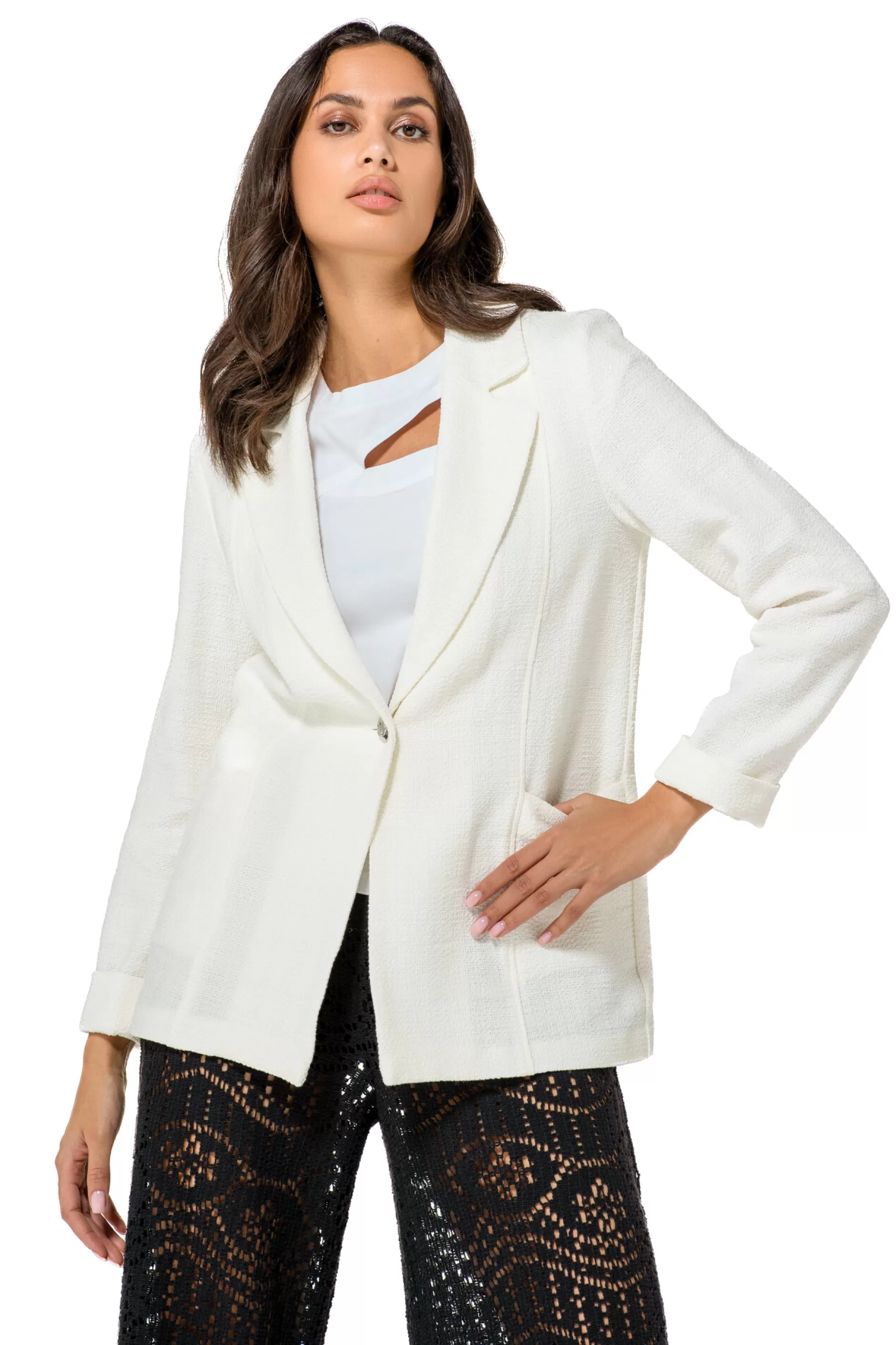 Rechtvallende Blazer In Fijne Bouclette &Nbsp;Ongevoerd Omwile Van Comfort Lange Mouw Met Omslag Knoopsluiting Middenvoo…
