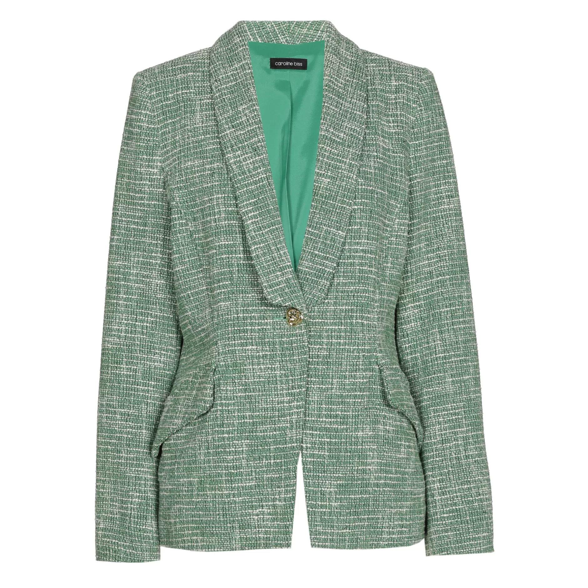Licht Aansluitende Blazer In Lichte Bouclette &Nbsp;Gevoerd Lange Mouw Knoopsluiting Middenvoor Zakken Met Klep Op Voorp…