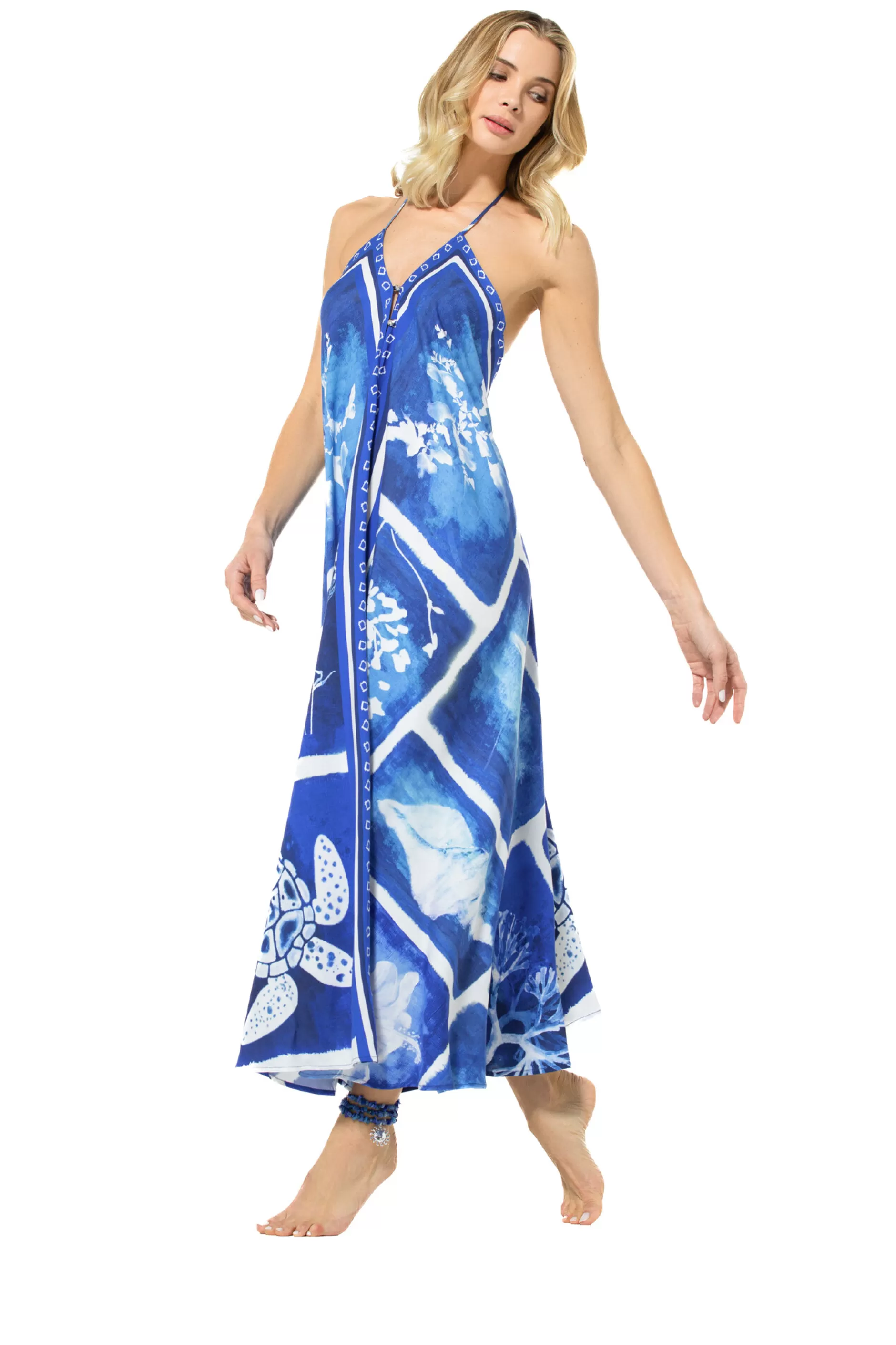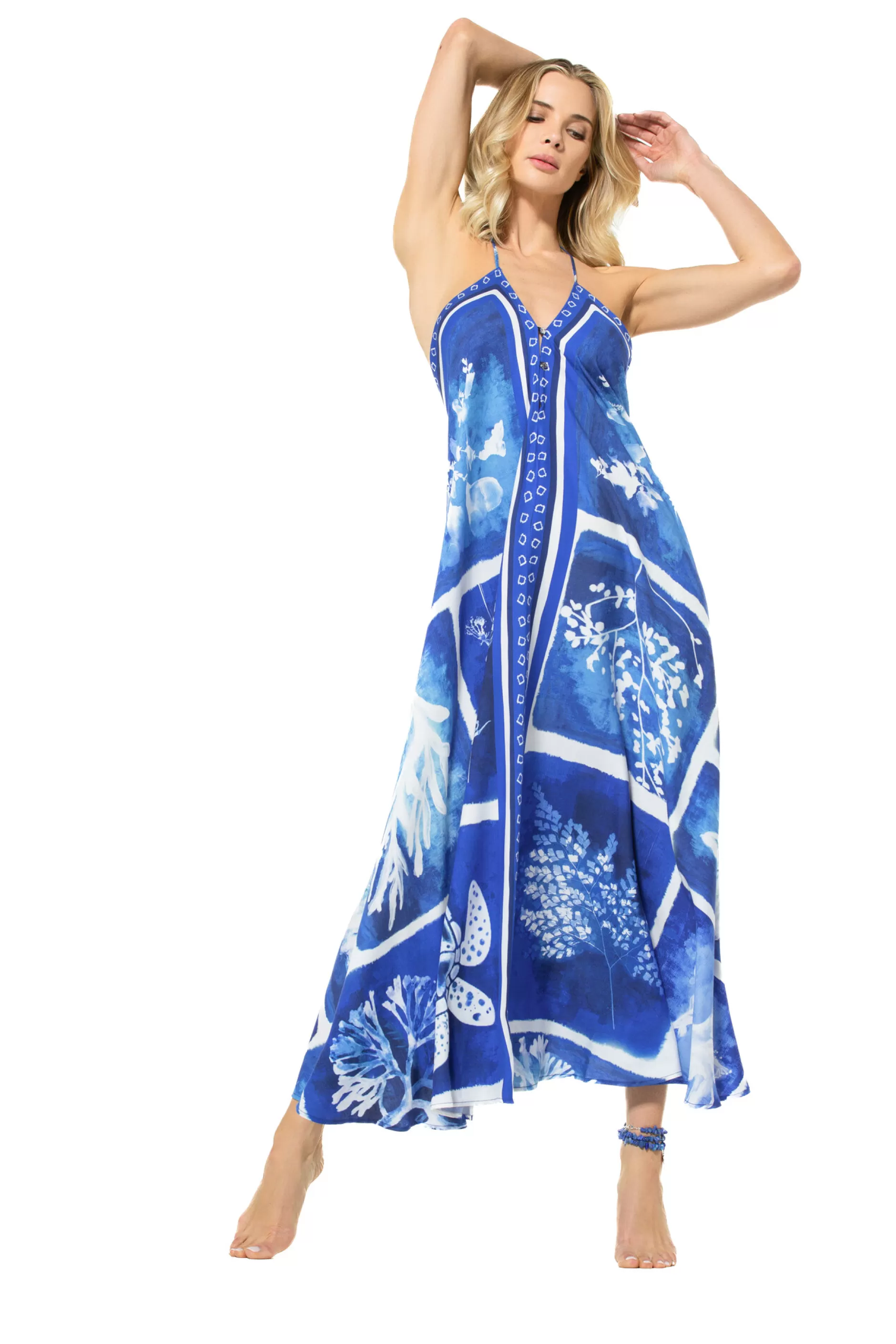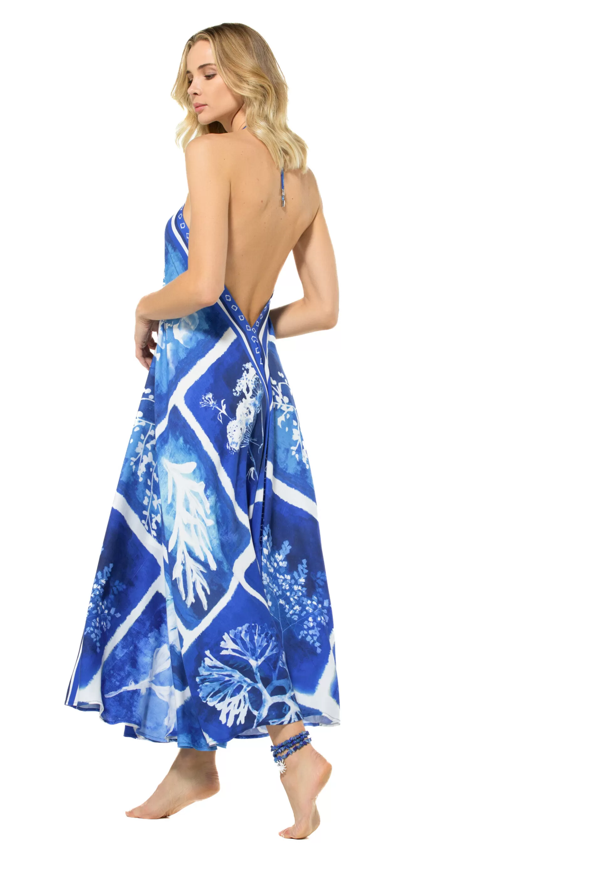 Soepelvallende Vakantiejurk &Nbsp;Open Rug Met Strikeffect Aan Hals Zwierige Pasvorm Geen Sluiting Geen Zakken Midi Jurk…