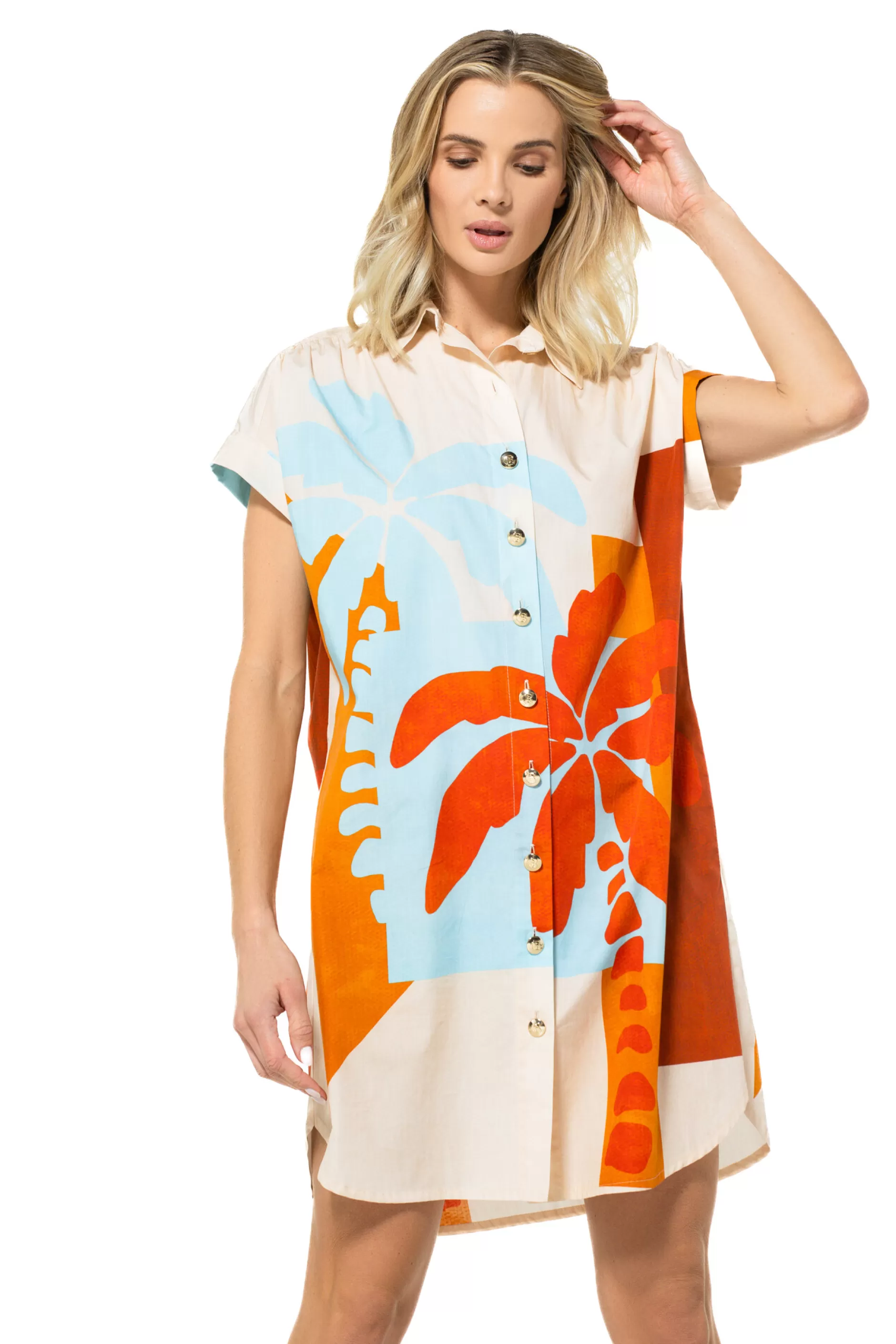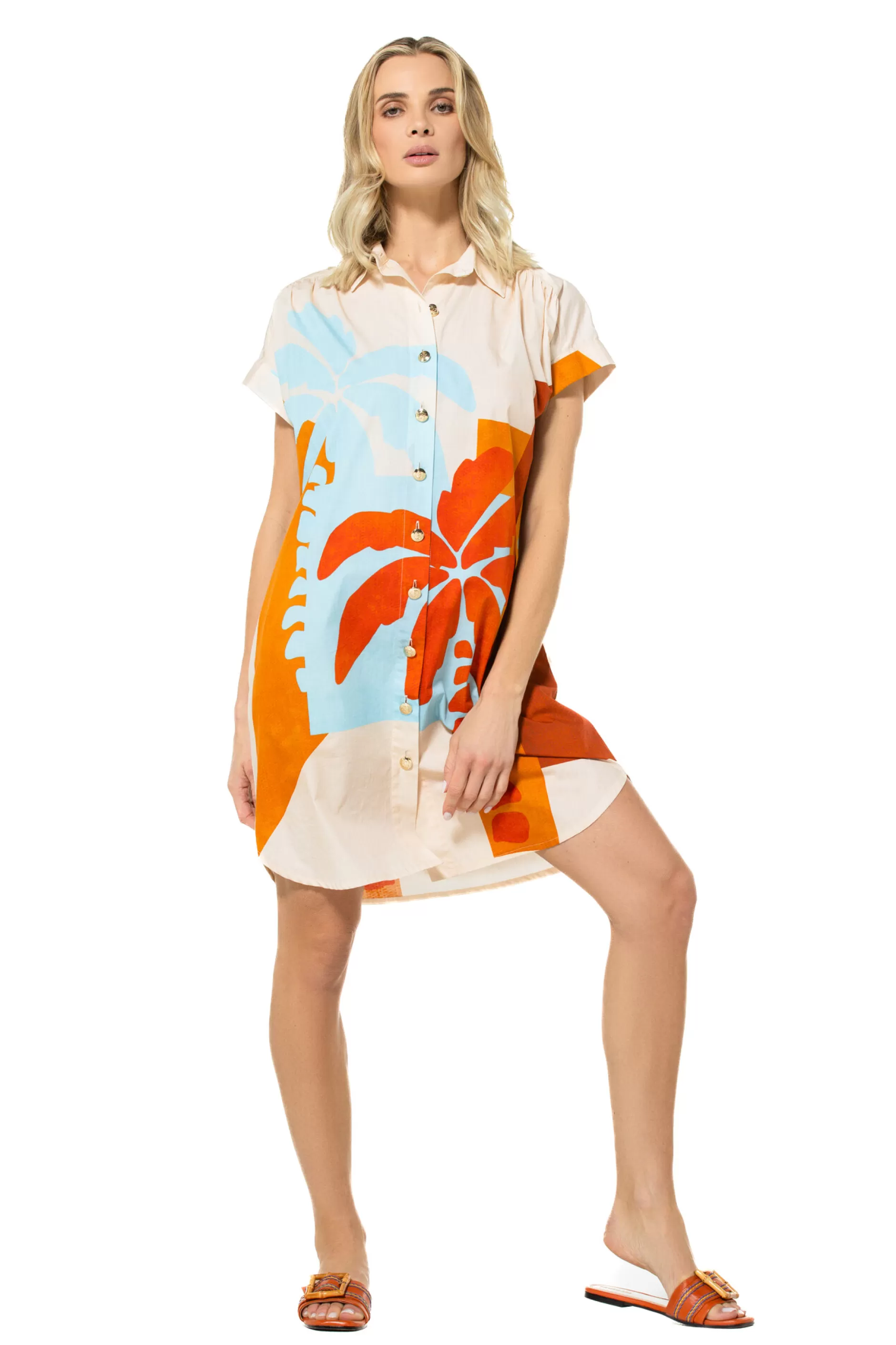 Comfortabele Rechtvallende Hemdjurk &Nbsp;Ongevoerd Knoopsluiting Middenvoor Steekzakken In Zijnaad Plooidetail Aan Scho…