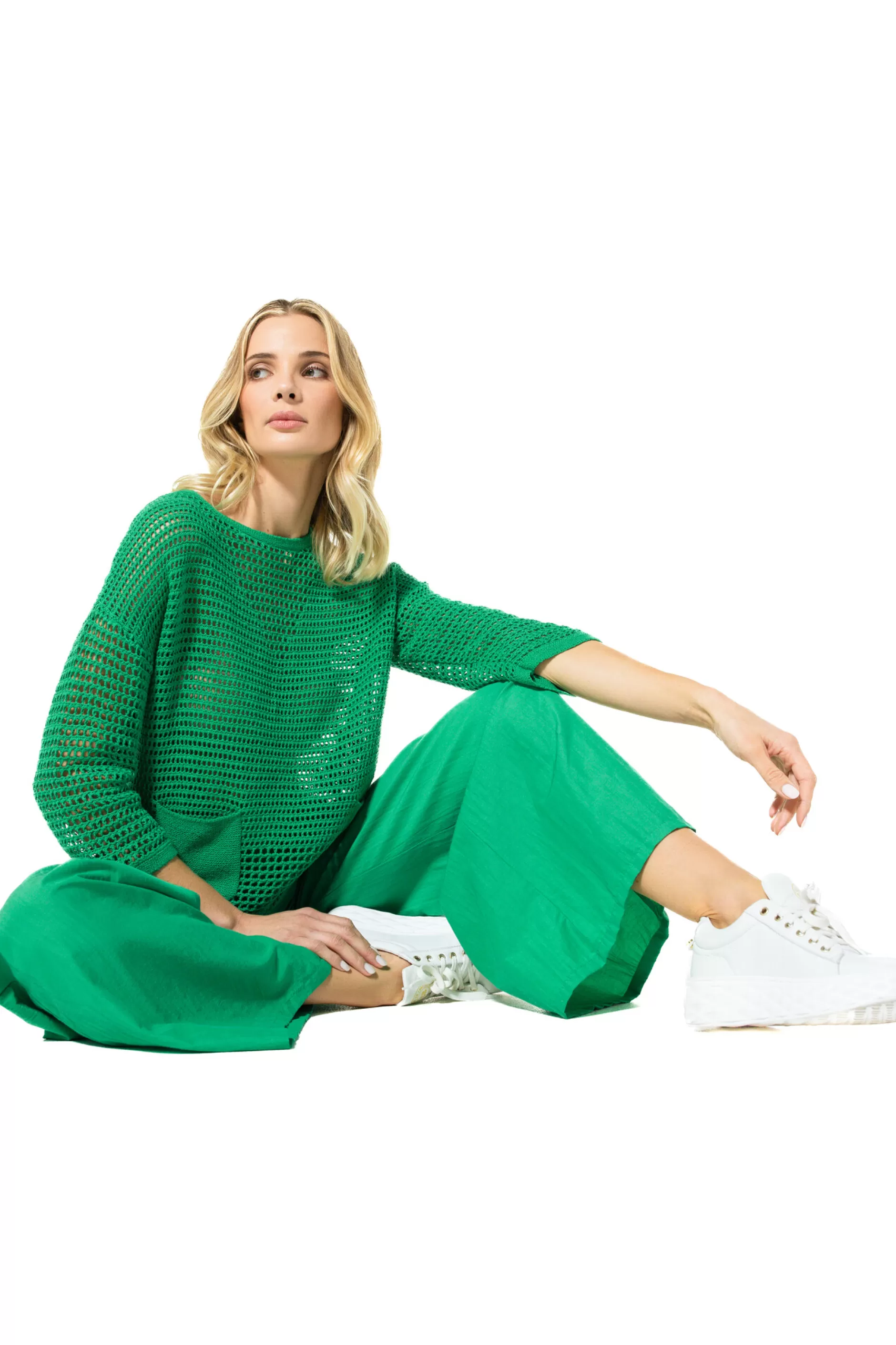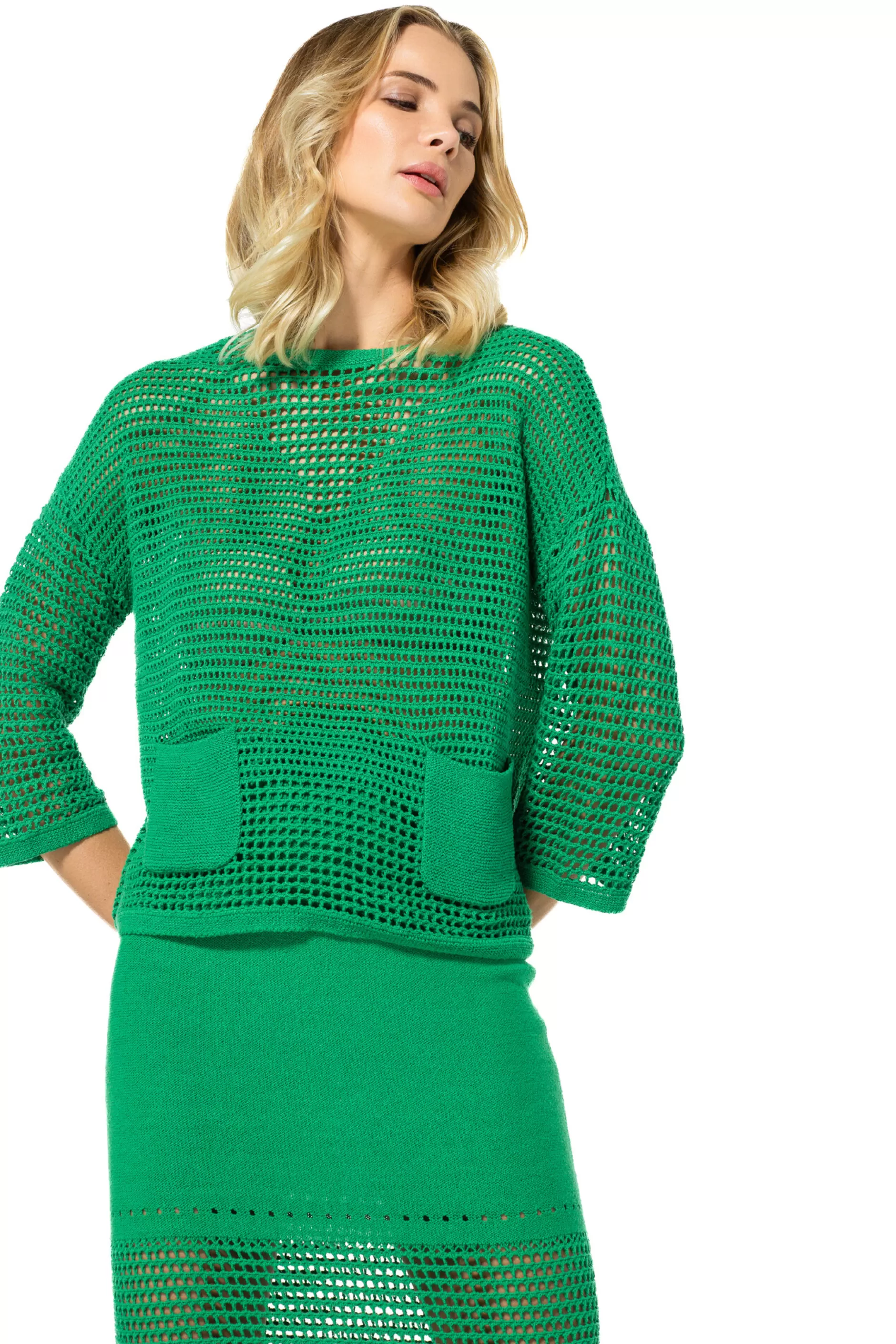 Doorzichtige Gehaakte Lange Pull &Nbsp;Opgestikte Zakken 3/4 Wijde Mouw Boothals