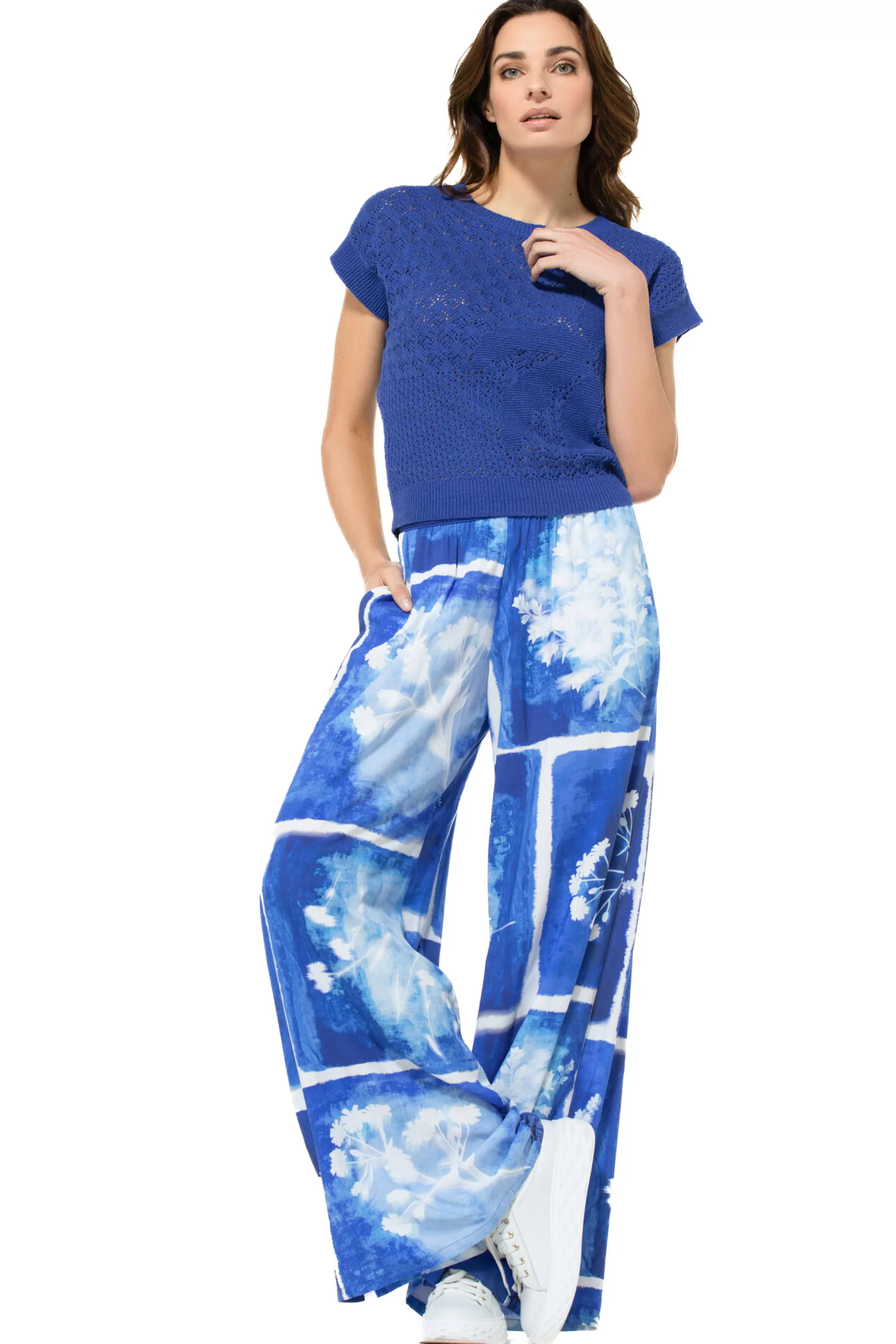 Half Doorzichtige Gebreide Pull &Nbsp;Ronde Hals Korte Mouw Met Mouwboord Let Op Verschillende Breisteken En Palmboomdet…