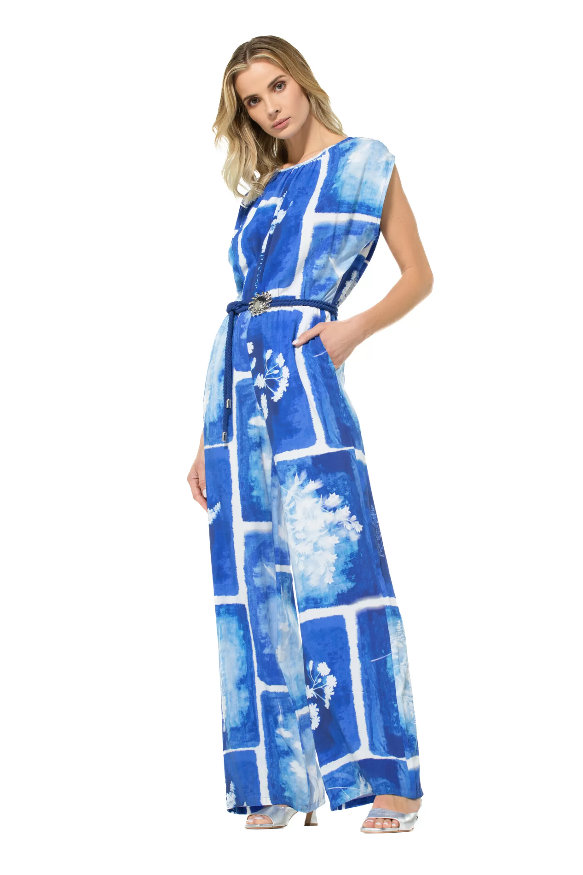 Soepelvallende Jumpsuit &Nbsp;Druppelsluiting In Middenrug Hals Brede Ronde Hals Elastische Taille Voor Bloezend Effect …