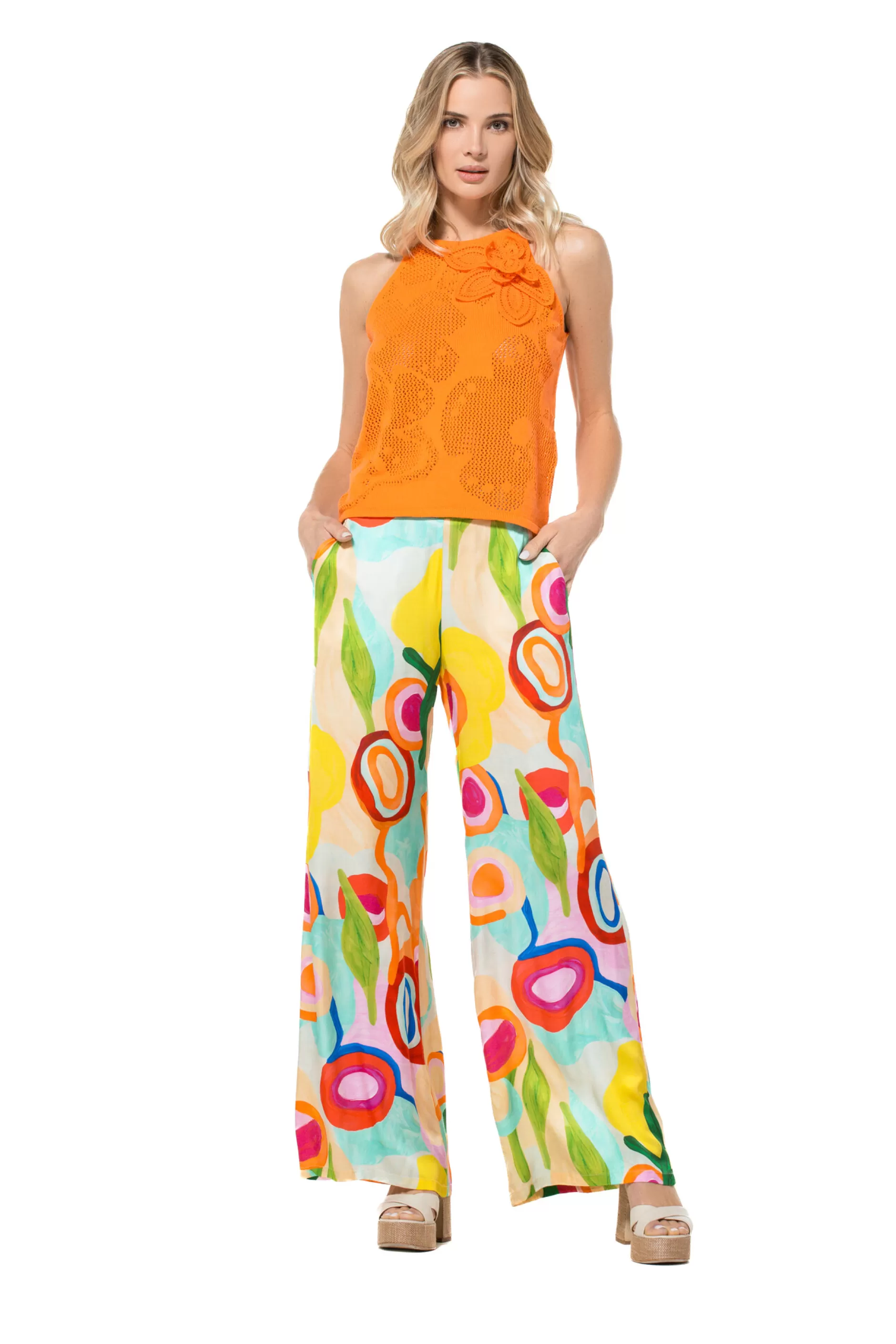 Frivole Soepelvallende Rechte Broek, Normal Waist &Nbsp;Elastiek Aan De Taille In Rug Steekzakken In Zijnaad Handfeel : …