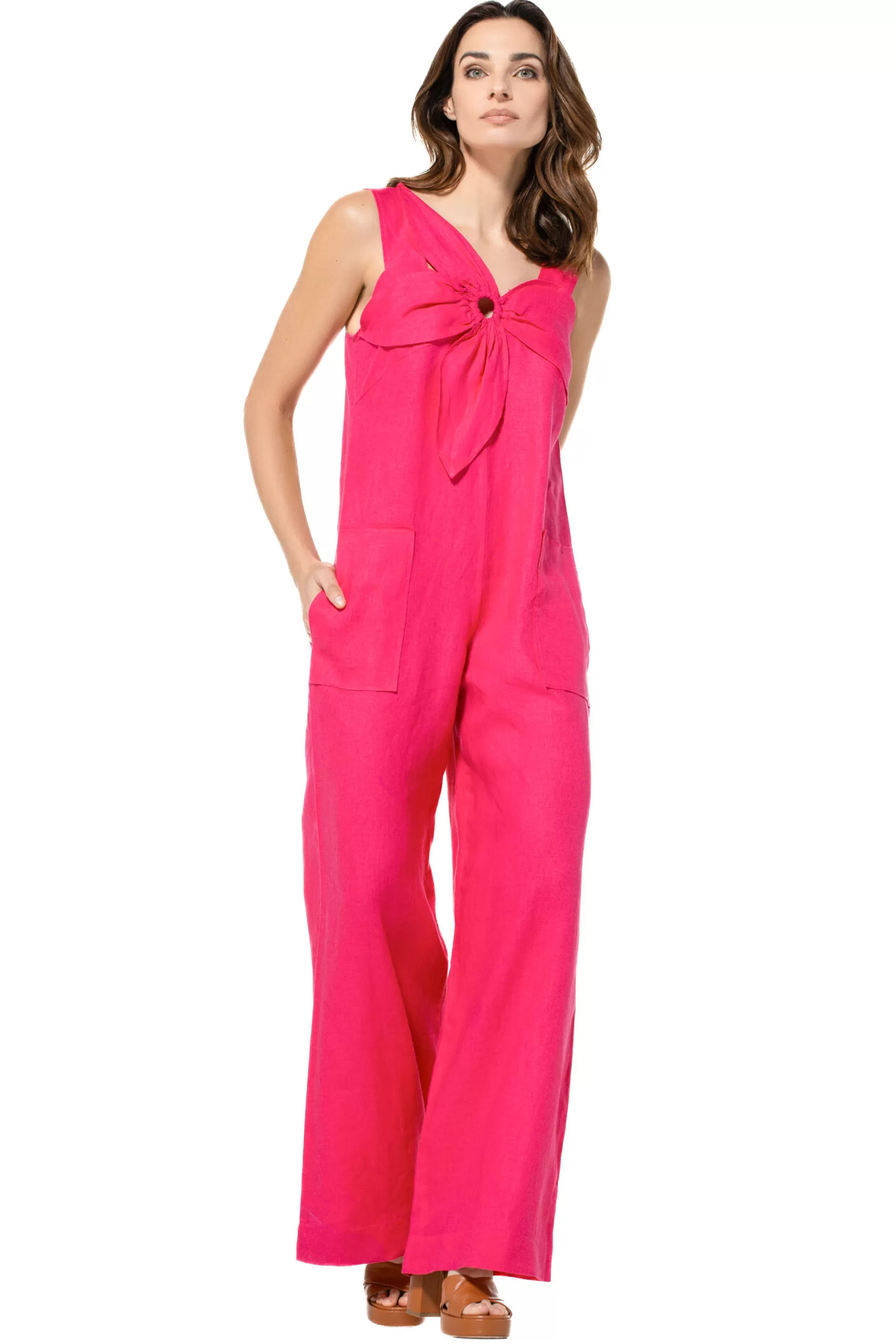 Jumpsuit In Linnen &Nbsp;Verborgen Ritssluiting In Middenrug Opgestikte Zakken Strikeffect Op Bustedeel Wijd Been