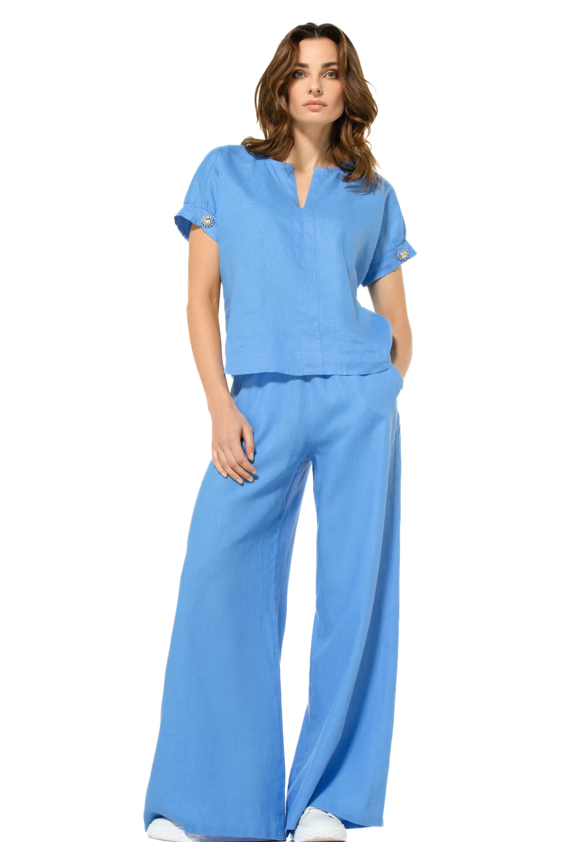 Wijde Broek In Linnen, Normal Waist