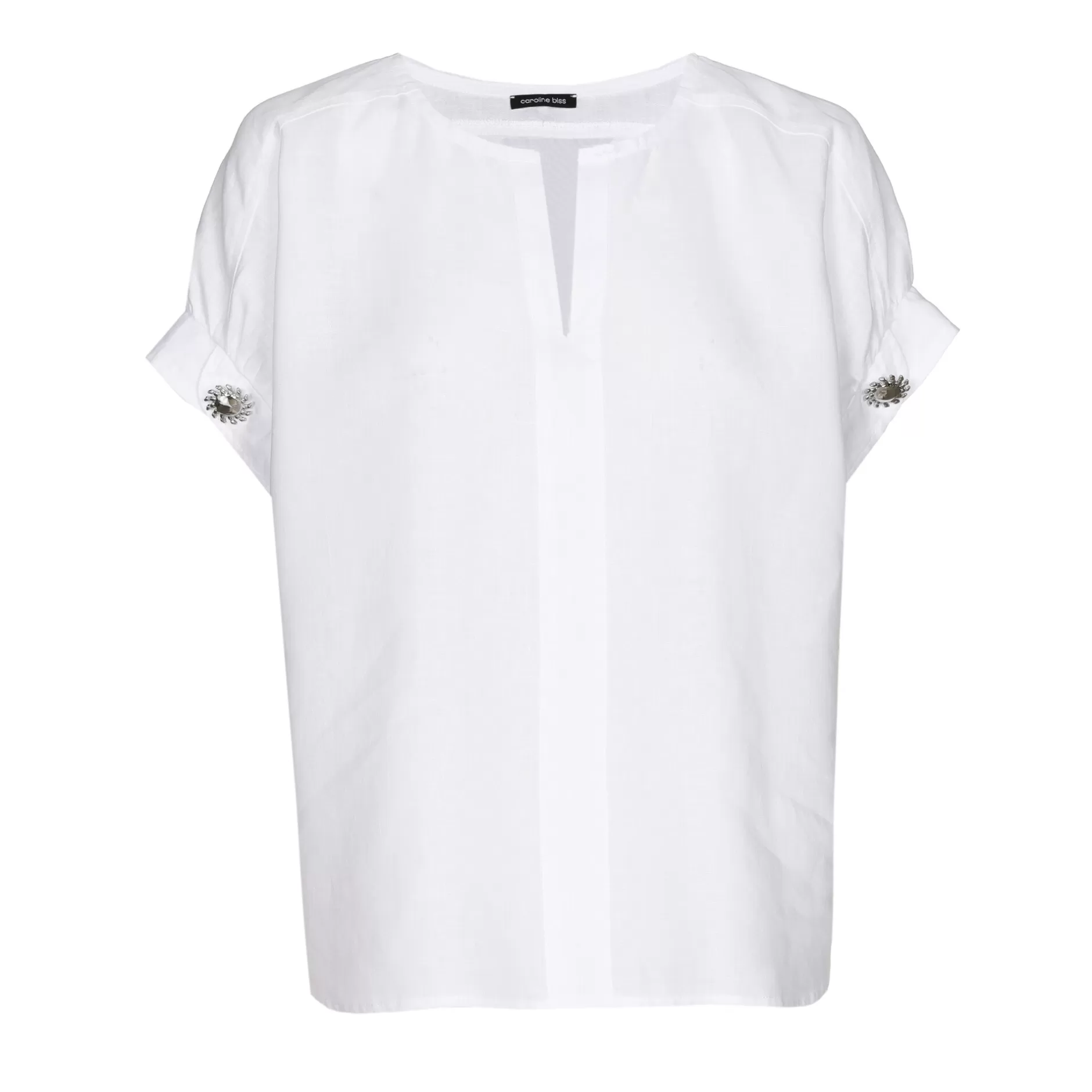 Rechtvallende Linnen Top &Nbsp;Korte Mouw Met Mouwboord Kleine V-Hals
