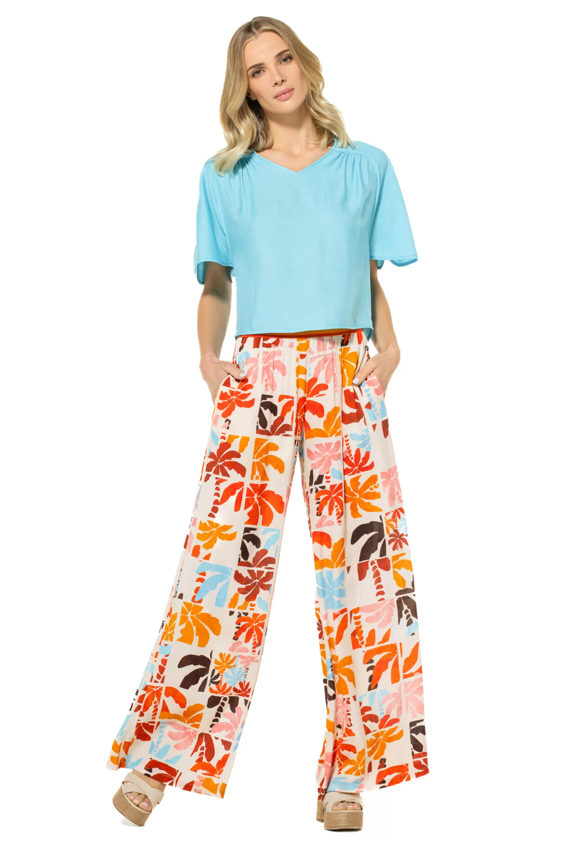 Losvallende Top &Nbsp;Korte Frivole Mouw Met Split Plooidetail Op Voor- En Rugpand