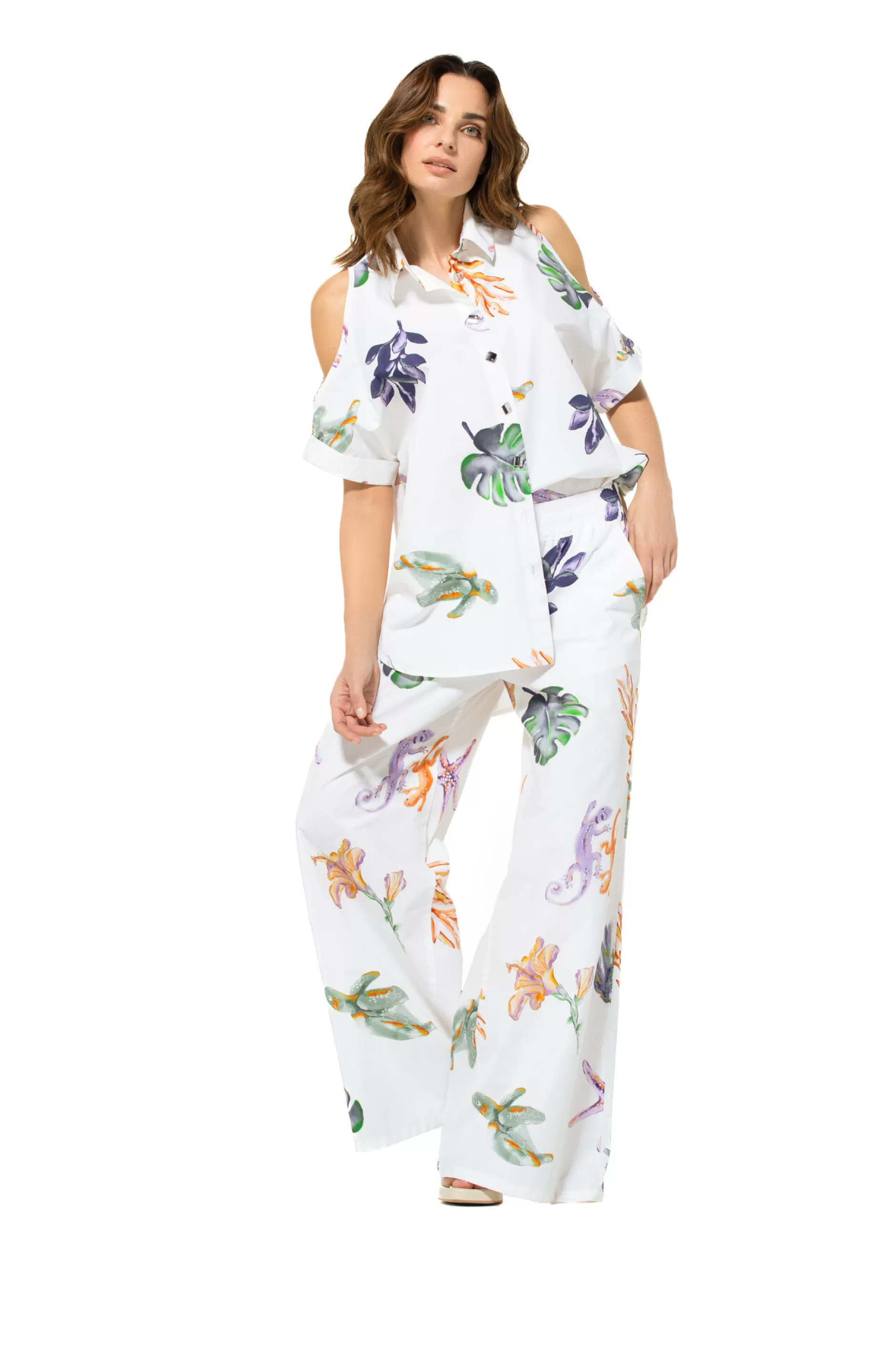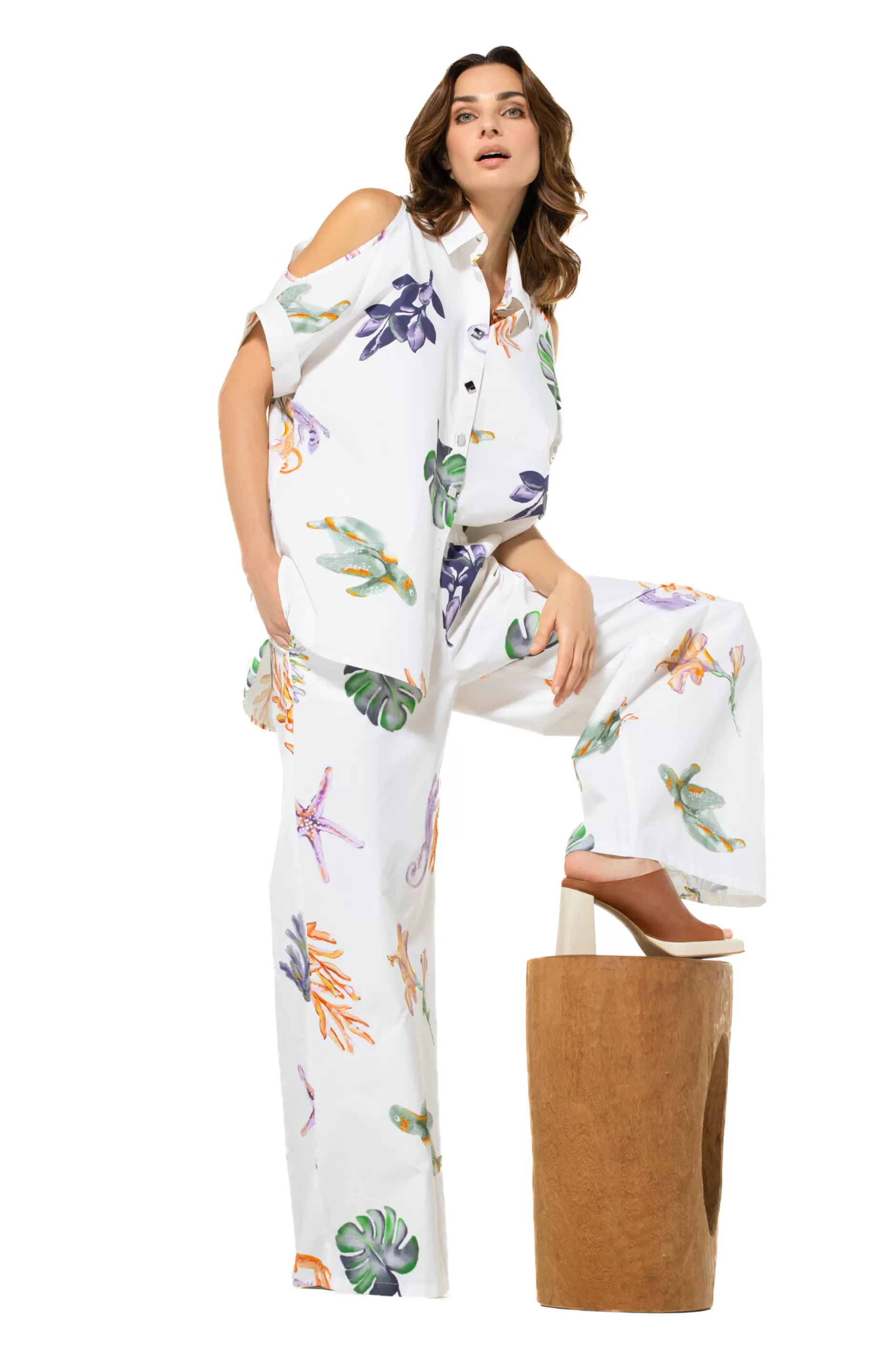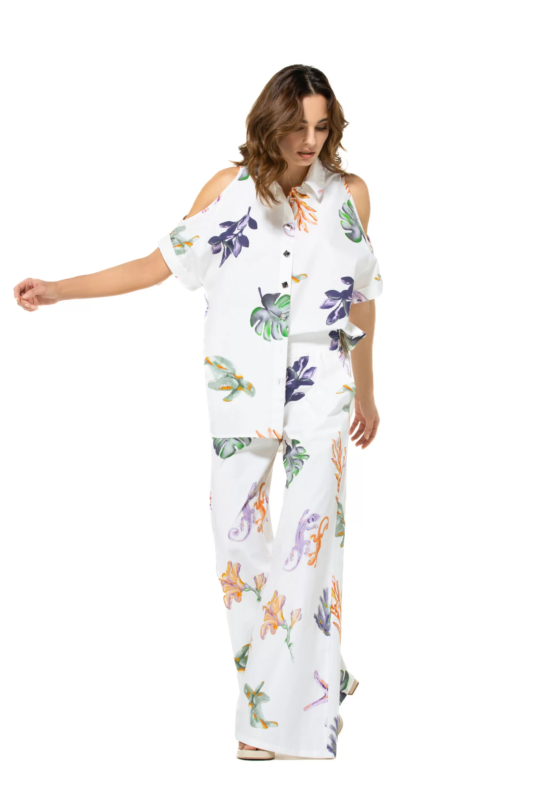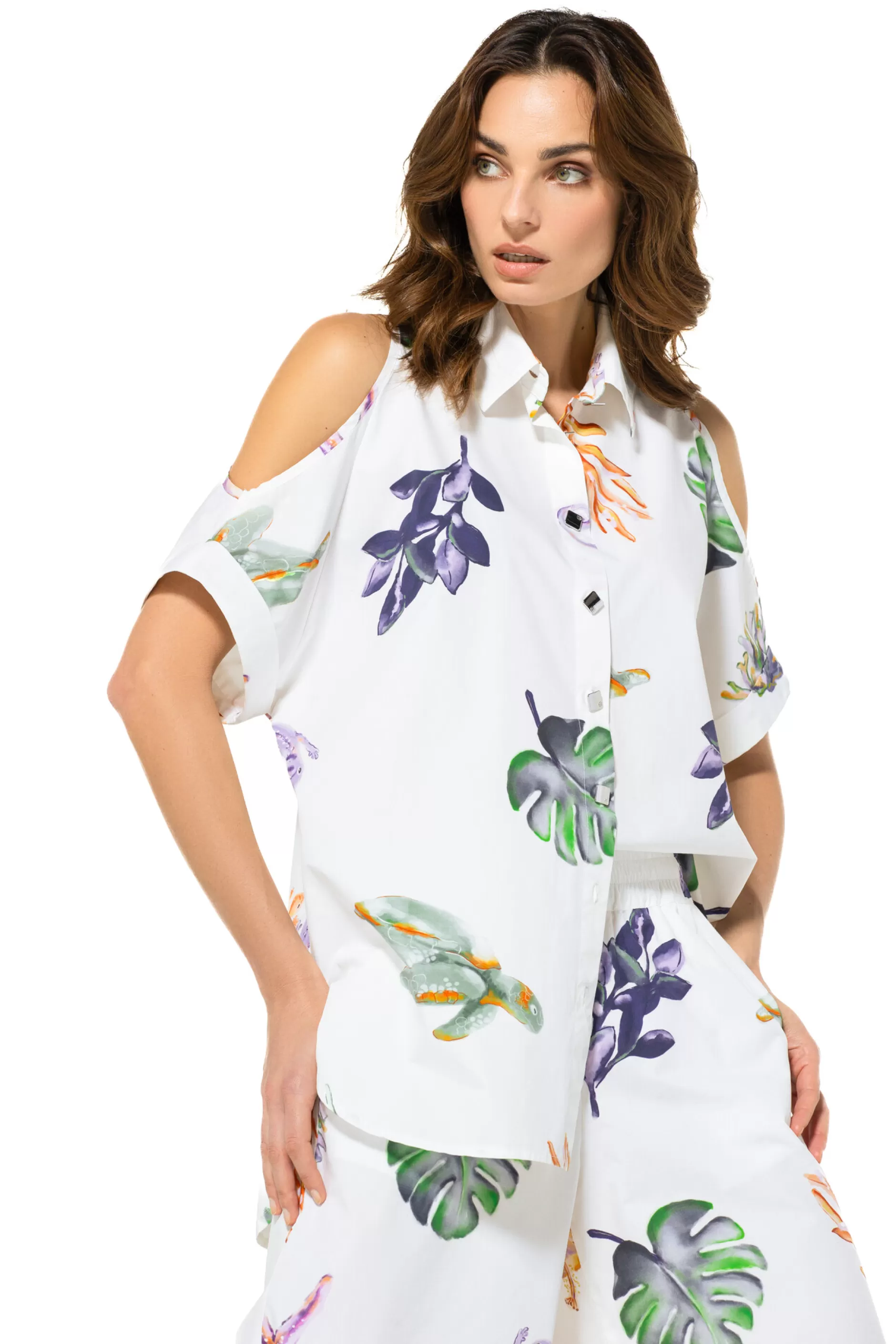 Lange Chemise Met Schoudereffect &Nbsp;Knoopsluiting Middenvoor Halflange Mouw Met Open Bovenarm En Mouwboord Afgeronde …