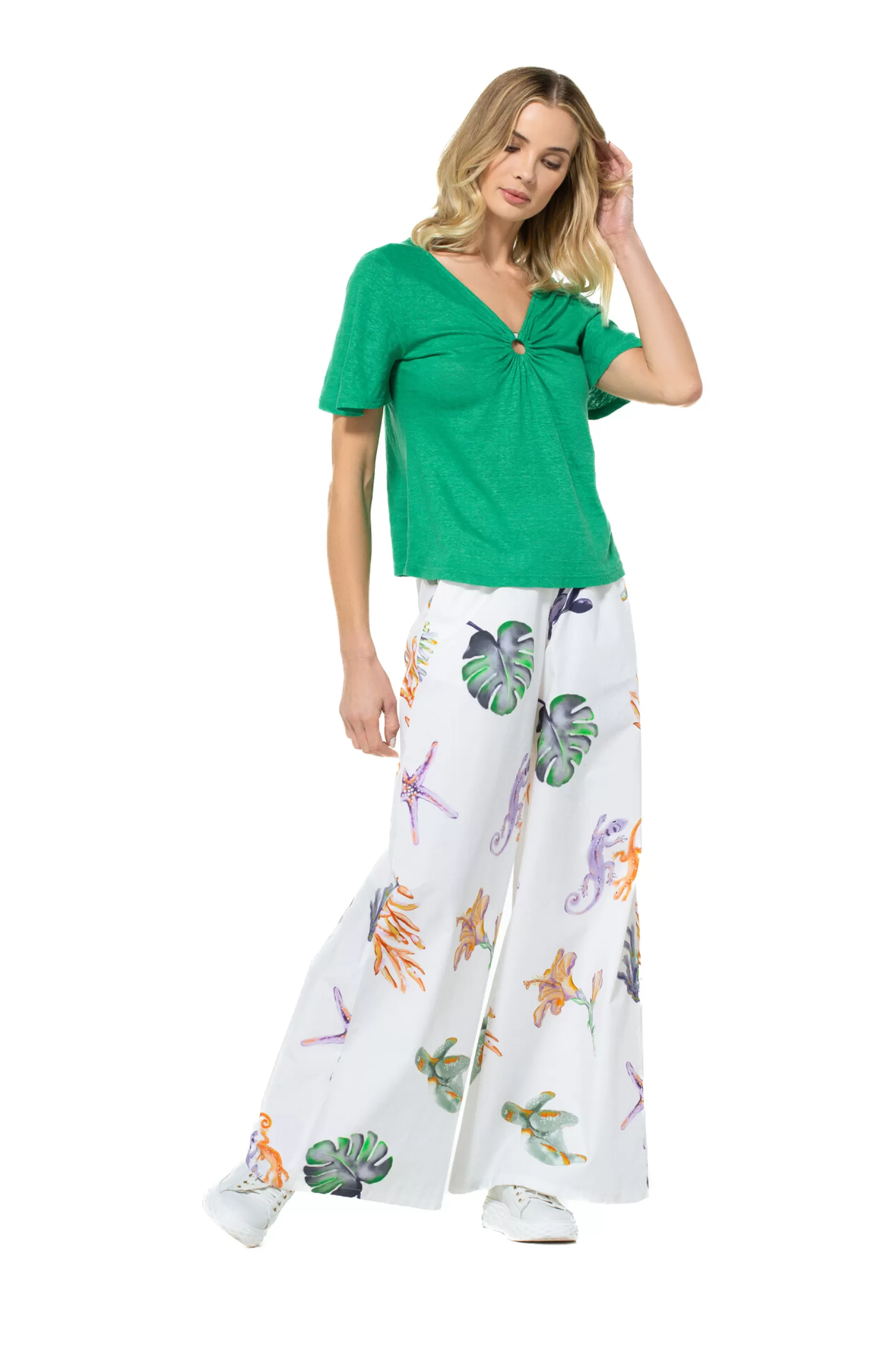 Linnen T-Shirt &Nbsp;Korte Frivole Mouw